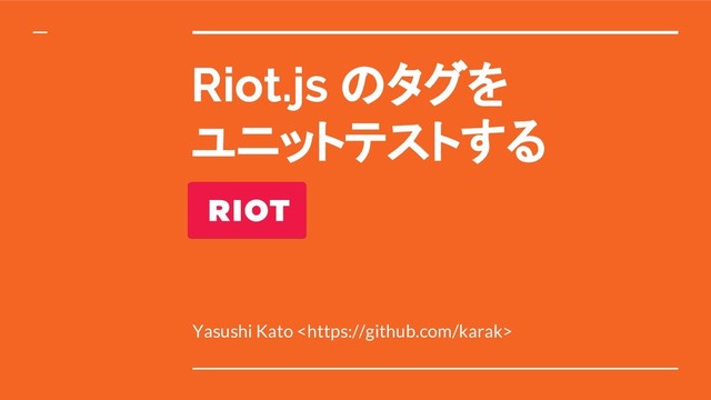 Riot.js のタグを ユニットテストする Yasushi Kato <https://github.com/karak>