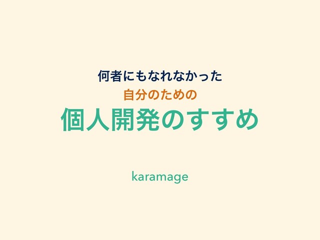 ԿऀʹͳΕͳ͔ͬͨ ࣗͷͨΊͷ ݸਓ։ൃͷ͢͢Ί karamage