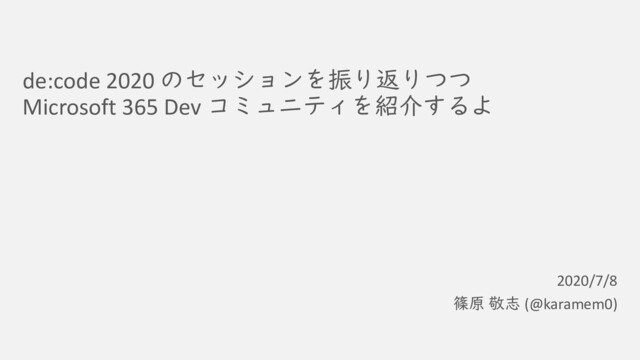 de:code 夏まつり ~よりコミュニティを楽しくするためのコミュニティのすすめ #3 (https://msdevjp.connpass.com/event/175983) に登壇したときのスライドです。