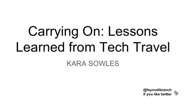 talk: ✨ Tiffany Longworth (wrote the title pun) ✨ Andrea Horbinski (advice on advice) ✨ Annalee Flower Horne (advice on advice) Thanks to my many supportive and kind friends who offered to help - except I didn't finish in time to get edits or help - next time!✨ My name is Kara Sowles I work at Puppet in Portland (and I love it there) I'm on twitter as @feynudibranch Thank you Donut.js for hosting this talk! Donut.js in Portland is my favorite meetup and I highly recommend it! shrug
