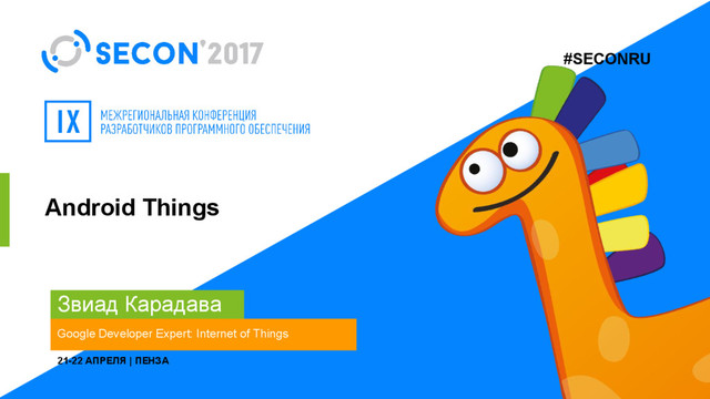 Things SDK https://developer.android.com/things Zviad Kardava - Google Developer Expert: IoT +ZviadKardava @ZviadKardava fb.com/Zv1ad