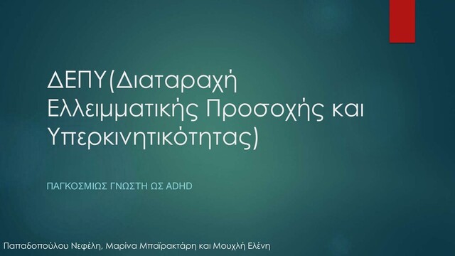 ειδικοί άτομα που πάσχουν με ΔΕΠΥ. Υπάρχουν πολλές θεραπείες όπως φαρμακευτική αγωγή, βοήθεια από ψυχολόγους, ψηφιακά εργαλεία(πχ ασκήσεις), αλλά στατιστικά δεν μπορούμε να αποδείξουμε ποια είναι και η πιο αποτελεσματική. Σύμφωνα με την καθηγήτρια Julia Rucklidge που συμμετείχε σε μια έρευνα μας , απαιτούνται περισσότερες έρευνες σε μεγαλύτερες ομάδες ανθρώπων που πάσχουν με ΔΕΠΥ για να κατανοήσουν οι ειδικοί τις πιθανές επιπτώσεις της διατροφής, της φαρμακευτικής αγωγής, της ηλικίας, της εθνικότητας και του φύλου.