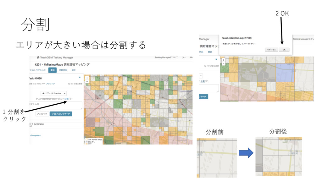 分割 エリアが⼤大きい場合は分割する 1 分割を クリック 2 OK 分割前 分割後