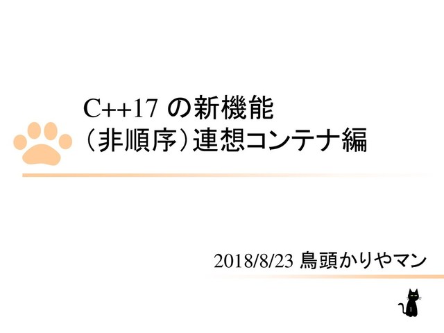 T, Cx, A> multimap<K, T, Cx, A> set系 比較関数が違っていてもOK set<K, Cx, A> multiset<K, Cx, A> unordered_map系 ハッシュ・比較関数が違っていてもOK unordered_map<K, T, Hx, Ex, A> unordered_multimap<K, T, Hx, Ex, A> unordered_set系 ハッシュ・比較関数が違っていてもOK unordered_set<K, Hx, Ex, A> unordered_multiset<K, Hx, Ex, A>