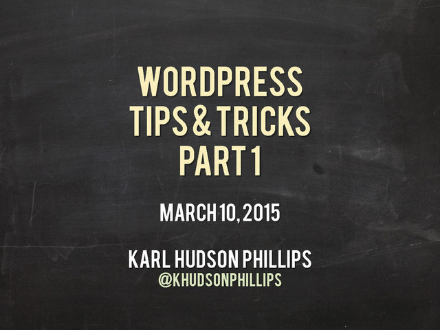WOrdPress Tips & Tricks Part 1 March 10, 2015 Karl