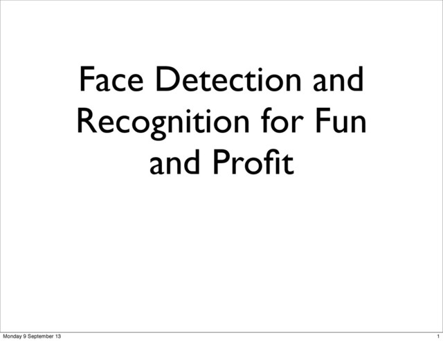A few default classifications available (different face features, full face, bodies etc.) • Make your own: http://coding-robin.de/ 2013/07/22/train-your-own-opencv-haar- classifier.html 9 Monday 9 September 13