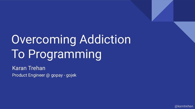 for coding side-projects? • Are you neglecting your social circles because you are too busy coding? • Are you constantly thinking of bugs & issues? • Are you skipping on lunches and dinners? @karntrehan