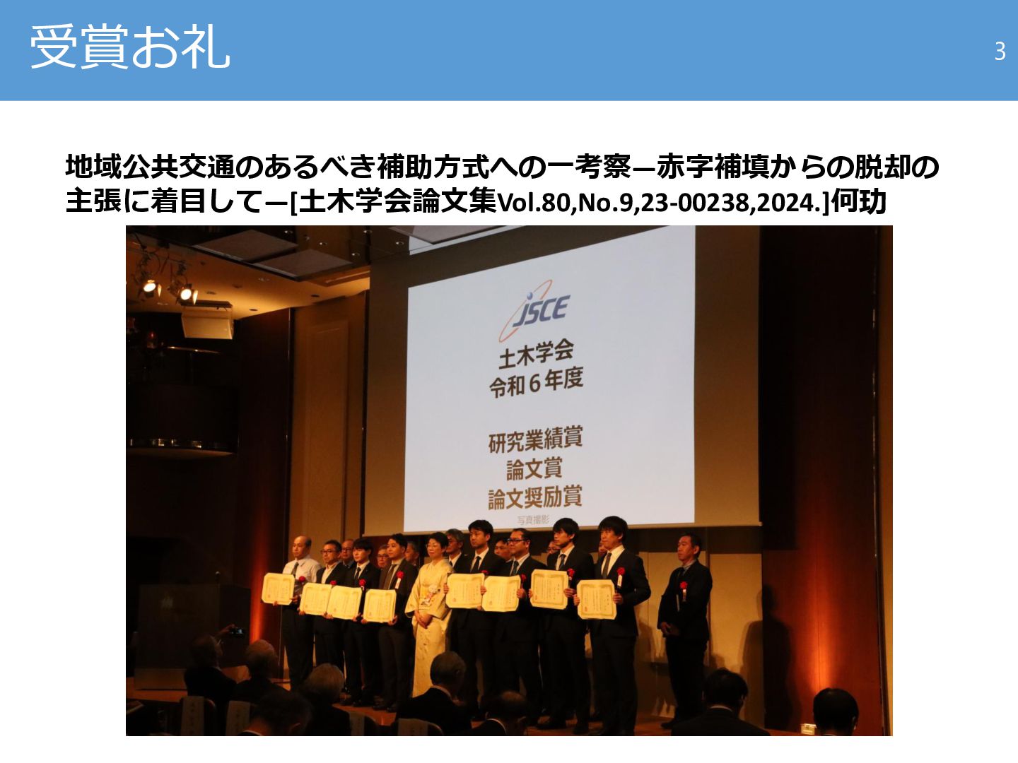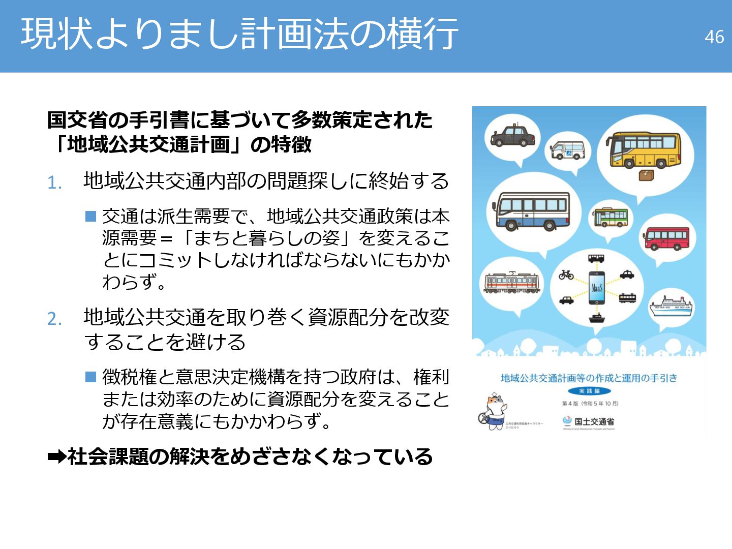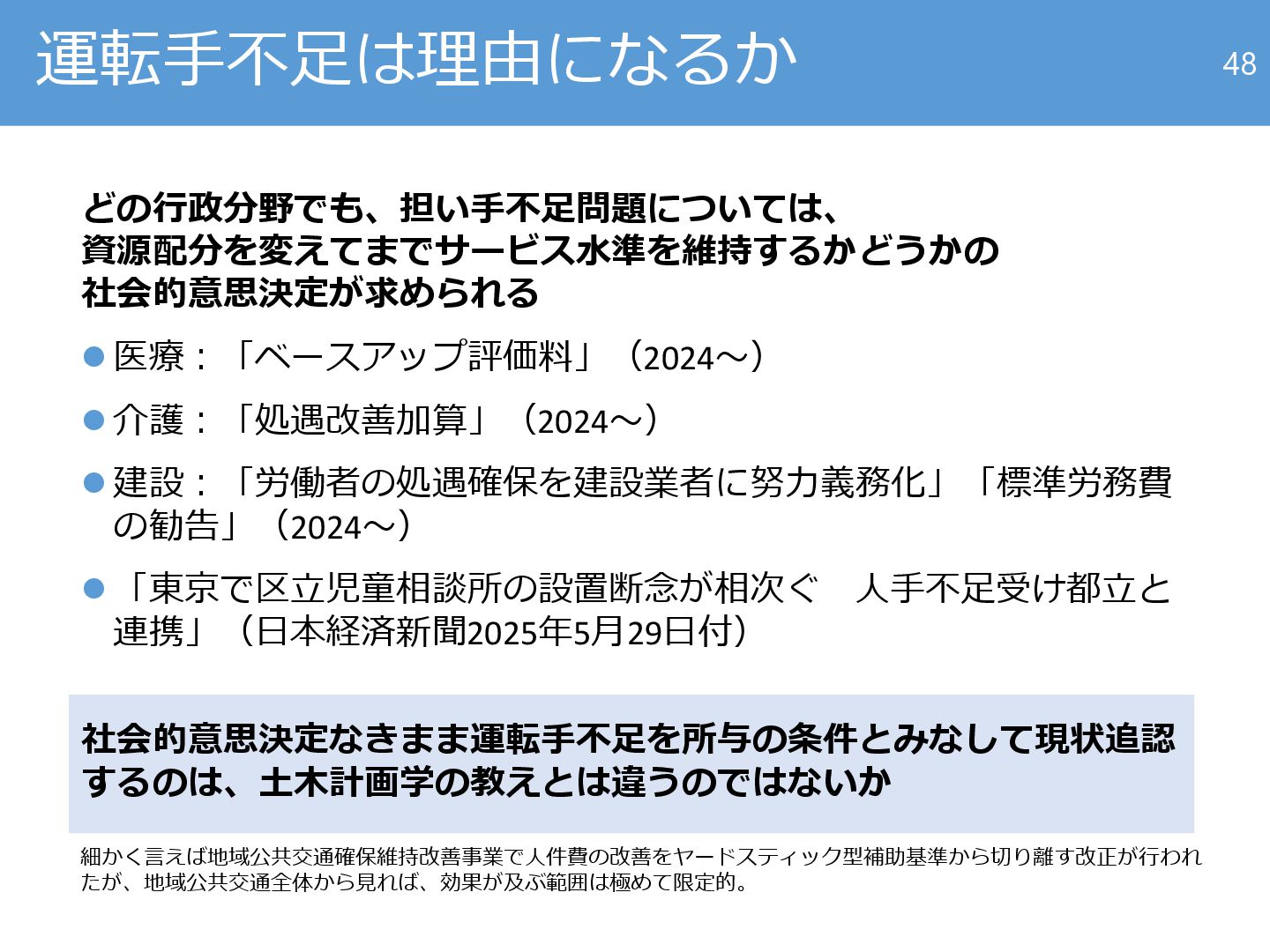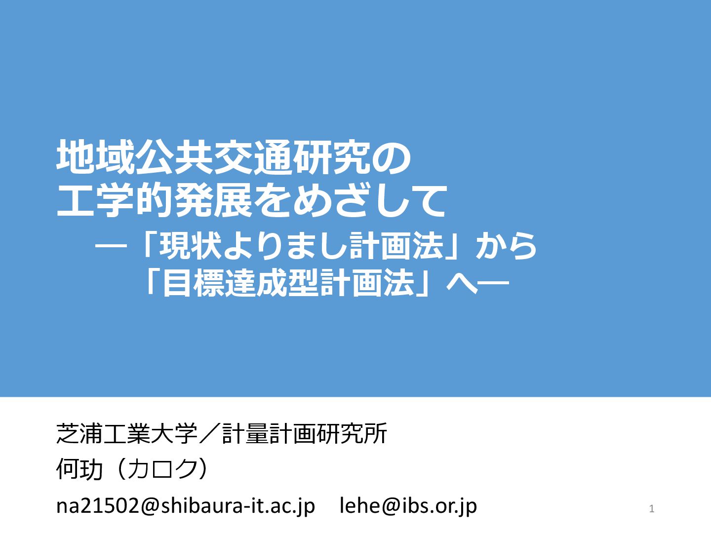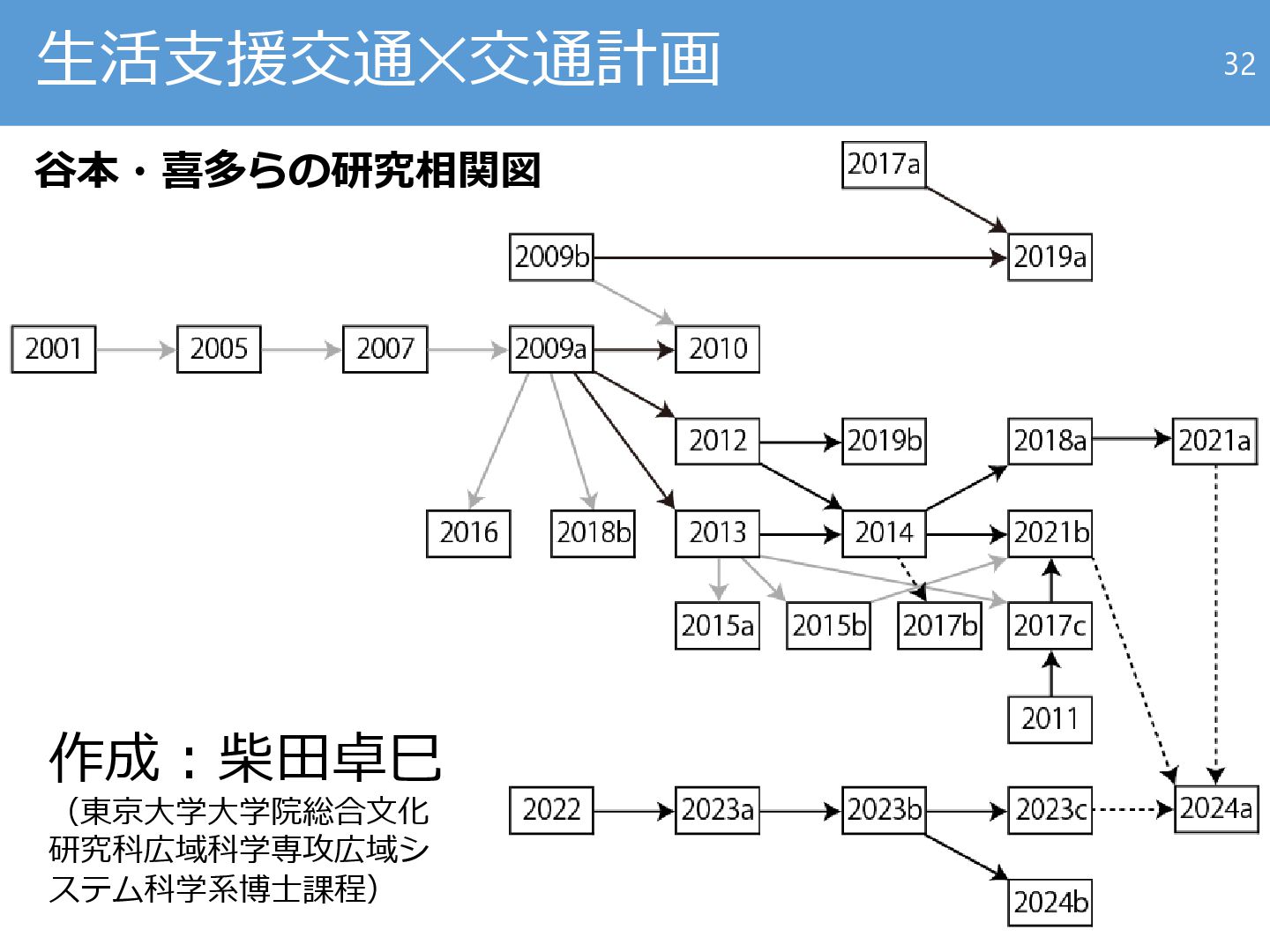 藤原章正, 杉恵頼寧:過疎地域における公共交通サービスの評価指標の提案,都市計画論文集,38.3巻,pp.475-480,2003. ⚫ 秋山哲男,吉田樹:生活支援の地域公共交通――路線バス・コミュニティバス・STサービス・デマンド型交通,学芸出版社,2009. ⚫ 加藤博和:地域公共交通の現場で何が求められているのか?,家田仁・小嶋光信:地域モビリティの再構築,pp.80-109,薫風社, 2021. ⚫ 中村嘉明, 溝上章志:バスロケーションシステムの導入・運用の実態と課題,土木学会論文集D3,74巻5号,pp. I_1197-I_1205,2018. ⚫ 土木学会:バスサービスハンドブック,2006. ⚫ 喜多秀行,谷本圭志:“地域公共交通計画の新たな潮流”特集にあたって,土木学会論文集D,65巻4号,pp.519-520,2009. ⚫ 喜多秀行:社会資本としての地域公共交通,運輸政策研究,運輸政策研究所設立15周年記念号,2010. ⚫ 家田仁・小嶋光信:地域モビリティの再構築,pp.80-109,薫風社, 2021. ⚫ 土木学会土木計画学研究委員会規制緩和後におけるバスサービスに関する研究小委員会:バスサービスハンドブック改訂版,2024. ⚫ 寺田一薫編著:地方分権とバス交通 規制緩和後のバス市場,勁草書房,2005. ⚫ 青木亮編著:地方公共交通の維持と活性化,成山堂書店,2020. ⚫ 宇都宮浄人:地域公共交通の統合的政策,東洋経済新報社,2021. ⚫ 宿利正史,軸丸真二:地域公共交通政策論第2版,東京大学出版会,2024. ⚫ 中村文彦:まちづくりにかかせない公共交通のために,新都市,75巻2号,pp.3-4,2021. ⚫ 小池淳司:権利と効率のストック効果に基づく社会的意思決定方法と実用的なストック効果計測手法の開発R4年度(1年目)の検討成果,社会資本整備審議会道路分科 会第23回事業評価部会 配布資料6,2023. ⚫ 猪井博登, 新田保次, 中村陽子:Capability Approachを考慮したコミュニティバスの効果評価に関する研究,土木計画学・論文集,21巻,pp.167-174,2004. ⚫ 谷本圭志:高齢社会のフロンティアで考える交通基本法-移動権への期待と不安-,運輸政策研究,13巻4号,pp.22-24,2011. ⚫ 国際交通安全学会:地域でつくる公共交通計画―日本版LTP策定のてびき,2012. ⚫ 何玏,楽奕平:バス産業規制緩和後の生活交通確保に対する学説と国・自治体の姿勢の展開―ミニマム保障と利便性向上の概念的曖昧さと政策目的の希薄化―,土木学 会論文集,80巻20号,2025. ⚫ 加藤博和,地域公共交通をプロデュースする-それは,ライフスタイルを提案すること,ていくおふ,149号,pp. 4-11,2018. ⚫ 加藤博和:地域公共交通が支える超高齢社会-地域コミュニティがモビリティを「つくり」「守り」「育てる」,都市計画,64巻4号,pp. 46-51,2015. ⚫ 加藤博和・高須賀大索・福本雅之:地域参画型公共交通サービス供給の成立可能性と持続可能性に関する実証分析-「生活バスよっかいち」を対象として-,土木学会 論文集D,65巻4号,pp. 568-582,2009. ⚫ 太田恒平:バスのサービスレベル向上と運賃策による熊本都市圏の渋滞緩和効果推計 ~公共交通への公的投資に向けた感度と集計QVに基づく迅速なシナリオ検討~, 土木計画学研究発表会・講演集第69巻,2024. ⚫ 西村和記, 東徹, 土井勉, 喜多秀行:クロスセクター効果で測る地域公共交通の定量的な価値,土木学会論文集D3,75巻5号,2019. ⚫ 酒井達朗:乗合バス事業者の個票データ分析に基づく地域公共交通事業への収支改善インセンティブ強化施策の検討,運輸政策研究,25巻,pp.6-17,2023. ⚫ 山本卓登:不採算バス路線に関する特別交付税措置の性質とその問題,運輸政策研究,25巻,pp.18-28,2023. ⚫ 何ロク,永田右京,楽奕平:地域公共交通のあるべき補助方式への―考察―赤字補填からの脱却の主張に着目して―,土木学会論文集,80巻9号,2024. ⚫ 喜多秀行,松永拓也,蘆田哲也,谷本圭志:リスク負担能力と経営改善努力を考慮した運行委託契約に関するモデル分析,交通工学研究発表会論文報告集,27巻, pp.141-144,2007. ⚫ 村野祐太郎, ZOU Wenqian, 溝上章志:需要変動を内生化した地域公共交通に対するインセンティブ補助の理論とその適用,土木学会論文集D,39巻5号,pp. I_649-I_658, 2013. ⚫ 山本卓登,何玏:市町村における地域公共交通政策の財源認識と運用の実態:市町村アンケートを基に,交通学研究,67号,pp.69-76,2024. 73