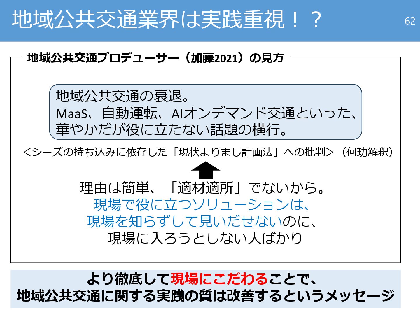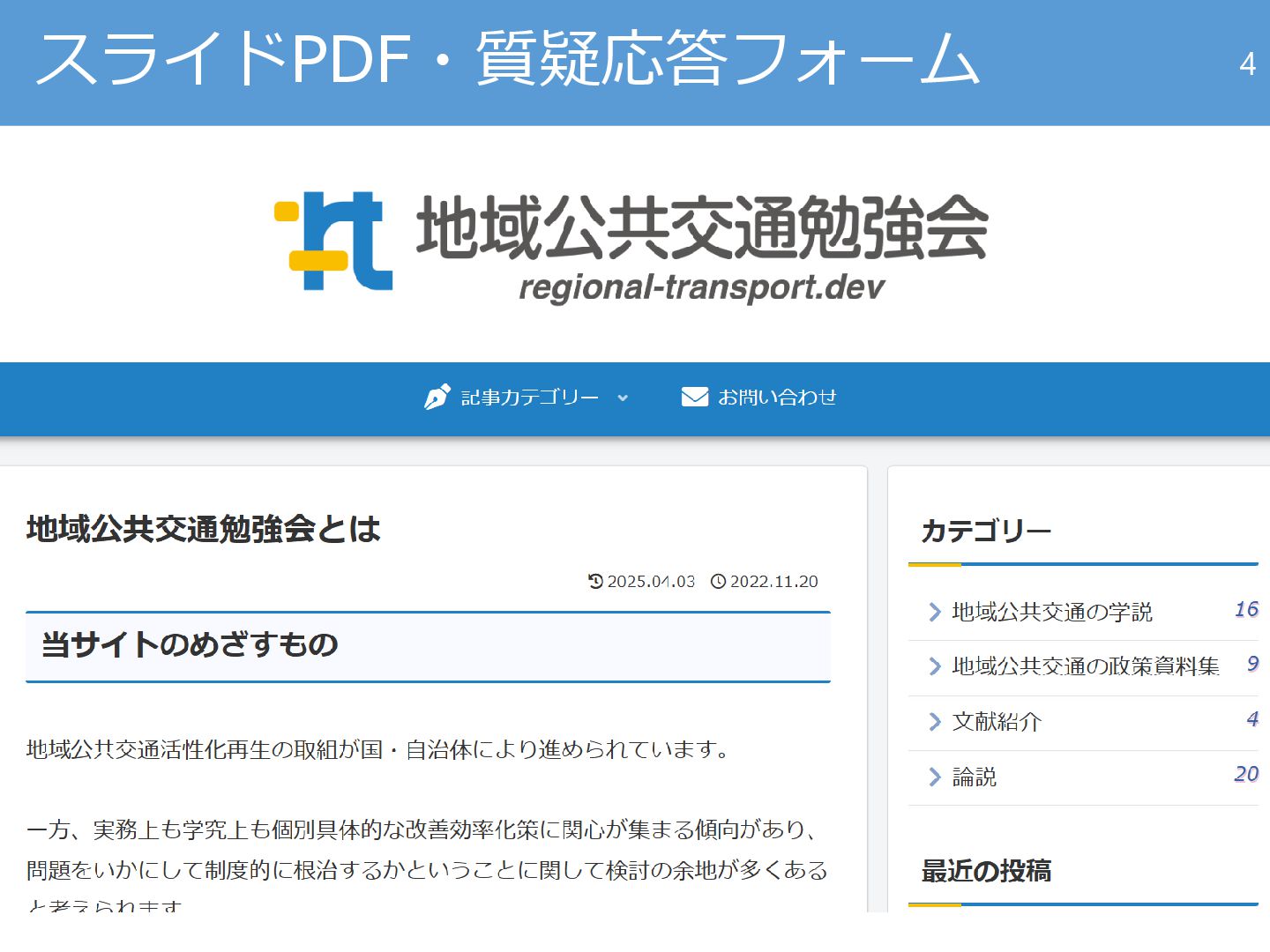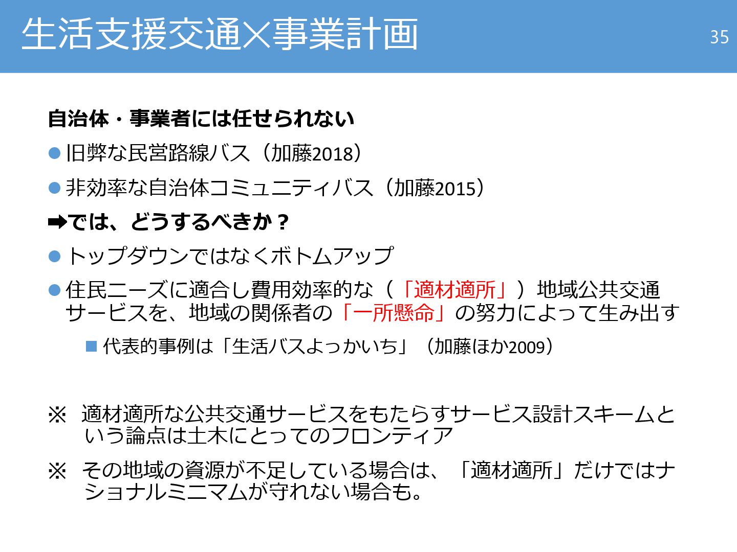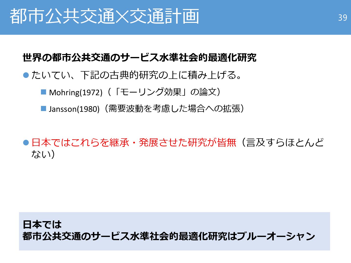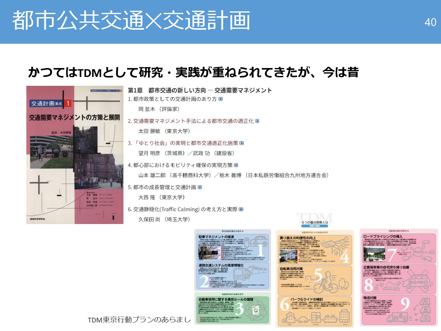 藤原章正, 杉恵頼寧:過疎地域における公共交通サービスの評価指標の提案,都市計画論文集,38.3巻,pp.475-480,2003. ⚫ 秋山哲男,吉田樹:生活支援の地域公共交通――路線バス・コミュニティバス・STサービス・デマンド型交通,学芸出版社,2009. ⚫ 加藤博和:地域公共交通の現場で何が求められているのか?,家田仁・小嶋光信:地域モビリティの再構築,pp.80-109,薫風社, 2021. ⚫ 中村嘉明, 溝上章志:バスロケーションシステムの導入・運用の実態と課題,土木学会論文集D3,74巻5号,pp. I_1197-I_1205,2018. ⚫ 土木学会:バスサービスハンドブック,2006. ⚫ 喜多秀行,谷本圭志:“地域公共交通計画の新たな潮流”特集にあたって,土木学会論文集D,65巻4号,pp.519-520,2009. ⚫ 喜多秀行:社会資本としての地域公共交通,運輸政策研究,運輸政策研究所設立15周年記念号,2010. ⚫ 家田仁・小嶋光信:地域モビリティの再構築,pp.80-109,薫風社, 2021. ⚫ 土木学会土木計画学研究委員会規制緩和後におけるバスサービスに関する研究小委員会:バスサービスハンドブック改訂版,2024. ⚫ 寺田一薫編著:地方分権とバス交通 規制緩和後のバス市場,勁草書房,2005. ⚫ 青木亮編著:地方公共交通の維持と活性化,成山堂書店,2020. ⚫ 宇都宮浄人:地域公共交通の統合的政策,東洋経済新報社,2021. ⚫ 宿利正史,軸丸真二:地域公共交通政策論第2版,東京大学出版会,2024. ⚫ 中村文彦:まちづくりにかかせない公共交通のために,新都市,75巻2号,pp.3-4,2021. ⚫ 小池淳司:権利と効率のストック効果に基づく社会的意思決定方法と実用的なストック効果計測手法の開発R4年度(1年目)の検討成果,社会資本整備審議会道路分科 会第23回事業評価部会 配布資料6,2023. ⚫ 猪井博登, 新田保次, 中村陽子:Capability Approachを考慮したコミュニティバスの効果評価に関する研究,土木計画学・論文集,21巻,pp.167-174,2004. ⚫ 谷本圭志:高齢社会のフロンティアで考える交通基本法-移動権への期待と不安-,運輸政策研究,13巻4号,pp.22-24,2011. ⚫ 国際交通安全学会:地域でつくる公共交通計画―日本版LTP策定のてびき,2012. ⚫ 何玏,楽奕平:バス産業規制緩和後の生活交通確保に対する学説と国・自治体の姿勢の展開―ミニマム保障と利便性向上の概念的曖昧さと政策目的の希薄化―,土木学 会論文集,80巻20号,2025. ⚫ 加藤博和,地域公共交通をプロデュースする-それは,ライフスタイルを提案すること,ていくおふ,149号,pp. 4-11,2018. ⚫ 加藤博和:地域公共交通が支える超高齢社会-地域コミュニティがモビリティを「つくり」「守り」「育てる」,都市計画,64巻4号,pp. 46-51,2015. ⚫ 加藤博和・高須賀大索・福本雅之:地域参画型公共交通サービス供給の成立可能性と持続可能性に関する実証分析-「生活バスよっかいち」を対象として-,土木学会 論文集D,65巻4号,pp. 568-582,2009. ⚫ 太田恒平:バスのサービスレベル向上と運賃策による熊本都市圏の渋滞緩和効果推計 ~公共交通への公的投資に向けた感度と集計QVに基づく迅速なシナリオ検討~, 土木計画学研究発表会・講演集第69巻,2024. ⚫ 西村和記, 東徹, 土井勉, 喜多秀行:クロスセクター効果で測る地域公共交通の定量的な価値,土木学会論文集D3,75巻5号,2019. ⚫ 酒井達朗:乗合バス事業者の個票データ分析に基づく地域公共交通事業への収支改善インセンティブ強化施策の検討,運輸政策研究,25巻,pp.6-17,2023. ⚫ 山本卓登:不採算バス路線に関する特別交付税措置の性質とその問題,運輸政策研究,25巻,pp.18-28,2023. ⚫ 何ロク,永田右京,楽奕平:地域公共交通のあるべき補助方式への―考察―赤字補填からの脱却の主張に着目して―,土木学会論文集,80巻9号,2024. ⚫ 喜多秀行,松永拓也,蘆田哲也,谷本圭志:リスク負担能力と経営改善努力を考慮した運行委託契約に関するモデル分析,交通工学研究発表会論文報告集,27巻, pp.141-144,2007. ⚫ 村野祐太郎, ZOU Wenqian, 溝上章志:需要変動を内生化した地域公共交通に対するインセンティブ補助の理論とその適用,土木学会論文集D,39巻5号,pp. I_649-I_658, 2013. ⚫ 山本卓登,何玏:市町村における地域公共交通政策の財源認識と運用の実態:市町村アンケートを基に,交通学研究,67号,pp.69-76,2024. 73