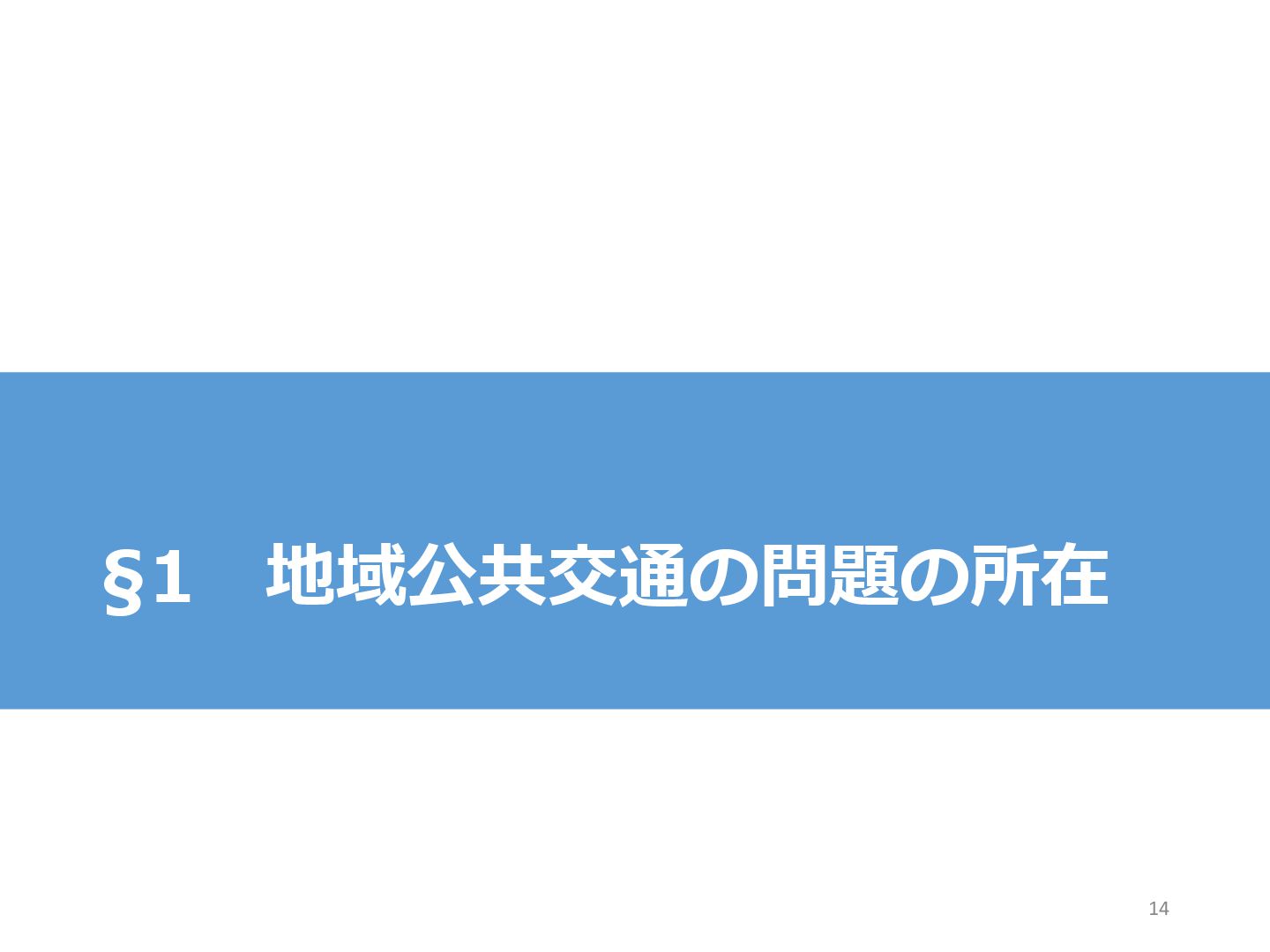 14. 「交通計画+事業計画」へ 国・自治体がミ ニマムの生活の 足を保障するこ と 人口低密度地域 における社会的 最適サービス水 準の決まり方 計画のあり方