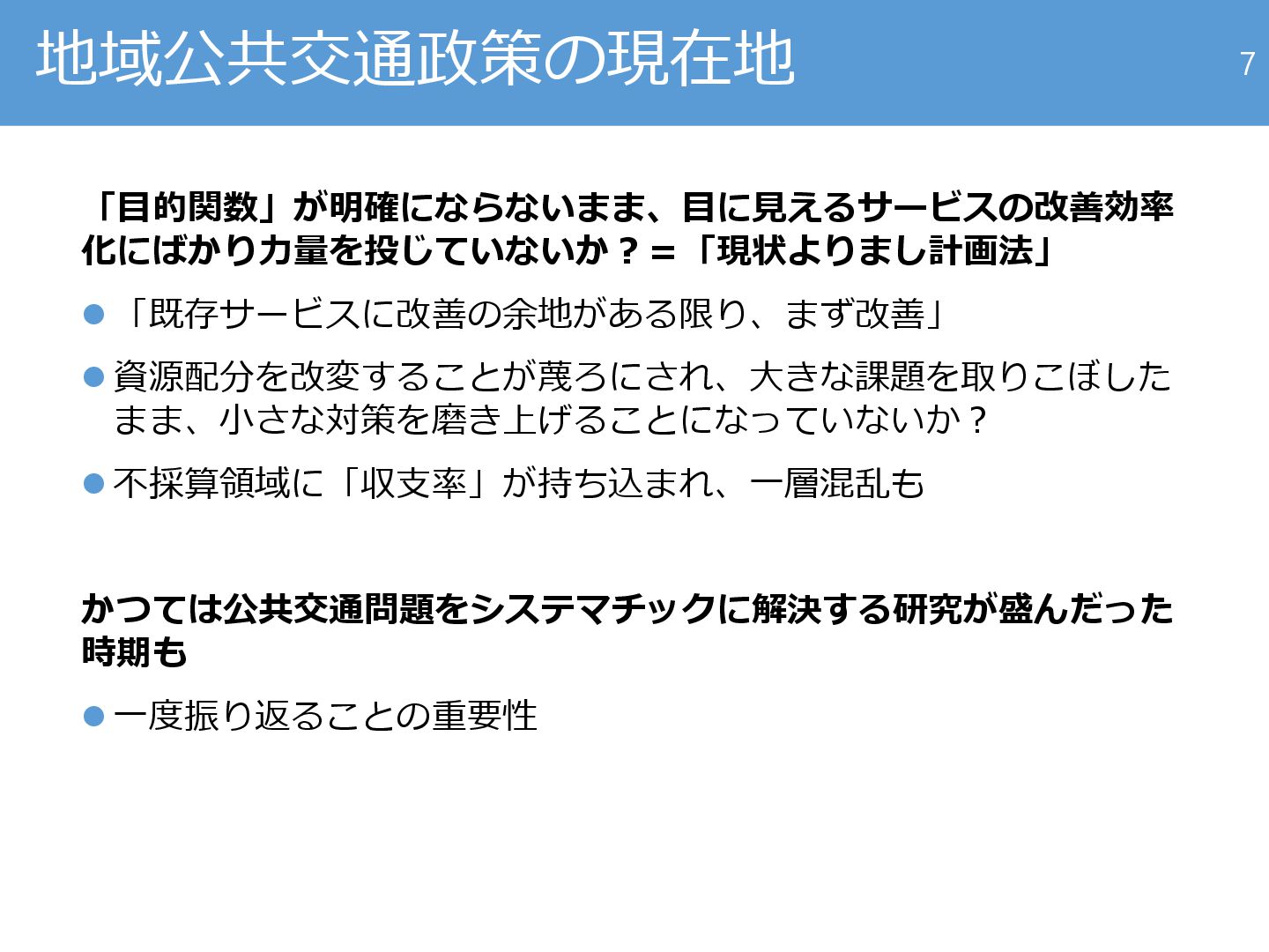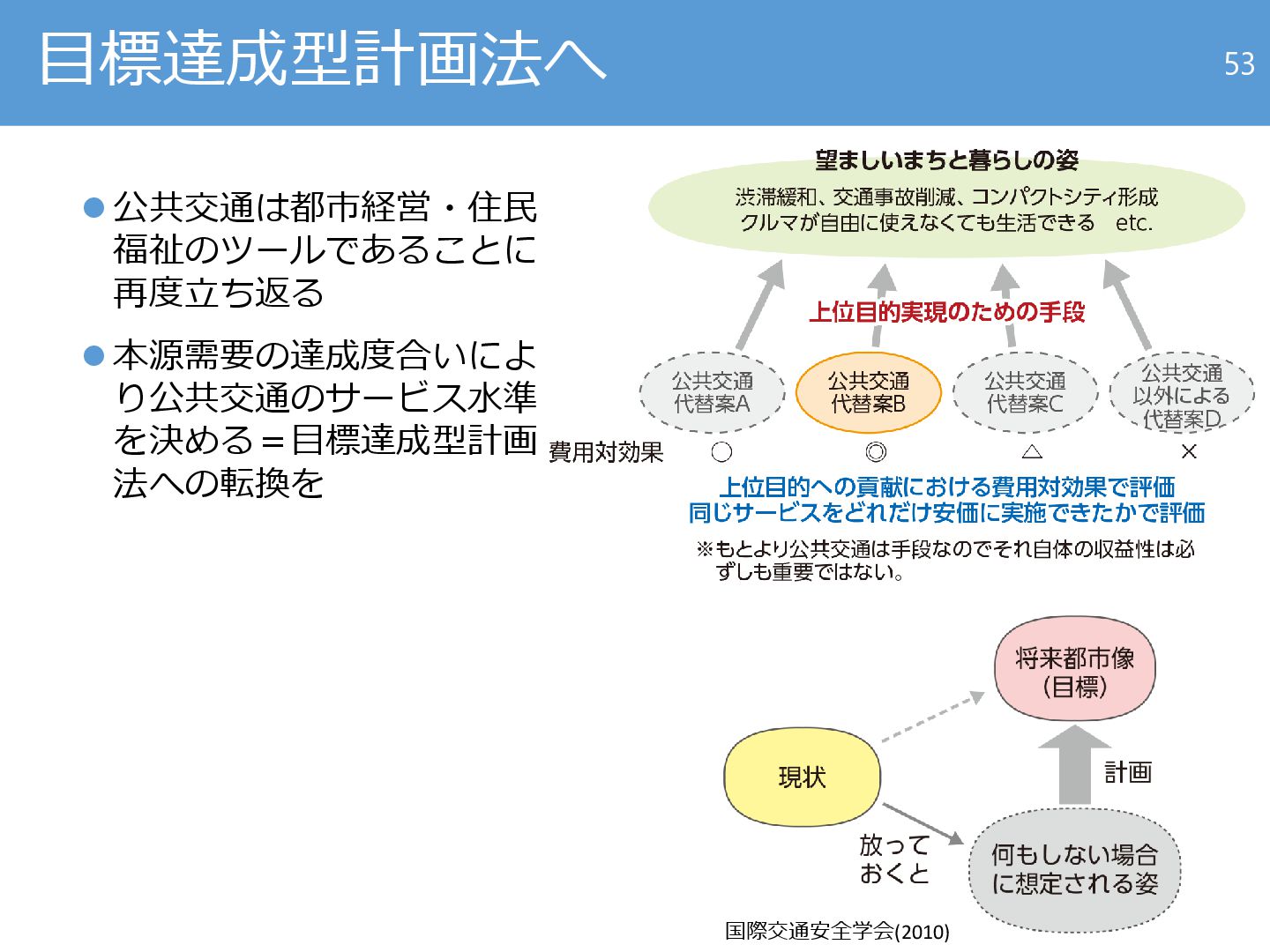 【秋大会招待講演】地域公共交通研究の工学的発展をめざして ―「現状よりまし計画法」から「目標達成型計画法」へ―
