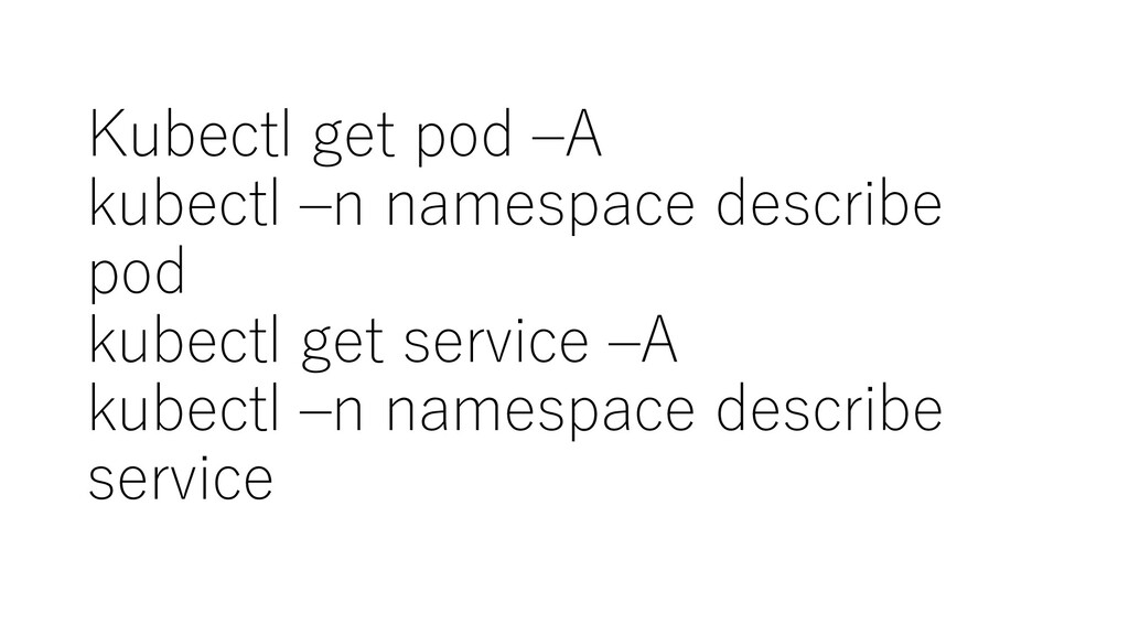 Kubectl get pod –A kubectl –n namespace describe pod kubectl
