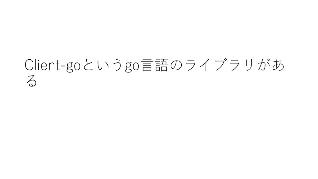 Client-goとは • KubernetesのAPIをたたくGo言語のライブラリ • これを使用すれば、Kubernetesの制御をプログラミングできる