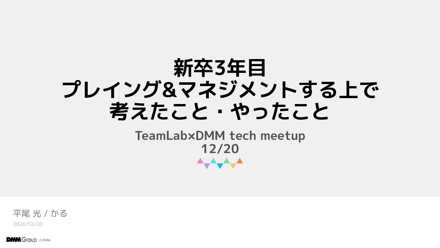 © DMM © DMM 新卒3年目 プレイング&マネジメントする上で 考えたこと・やったこと TeamLab×DMM tech meetup