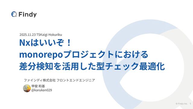 © Findy Inc. 2025.11.23 TSKaigi Hokuriku Nxはいいぞ! monorepoプロジェクトにおける 差分検知を活⽤した型チェック最適化 1