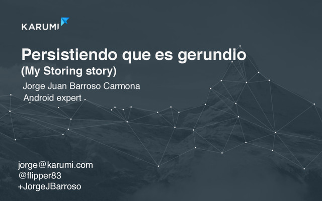 Store information is a really common problem in Android development. In this talk we try to give some framework solutions for store information in a easy way and we give some architectural clues for work with stored information.