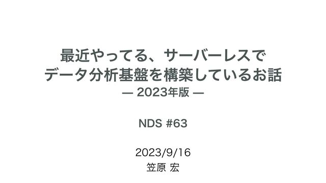 最近やってる、サーバーレスでデータ分析基盤を構築している話 / 20230916-nds63