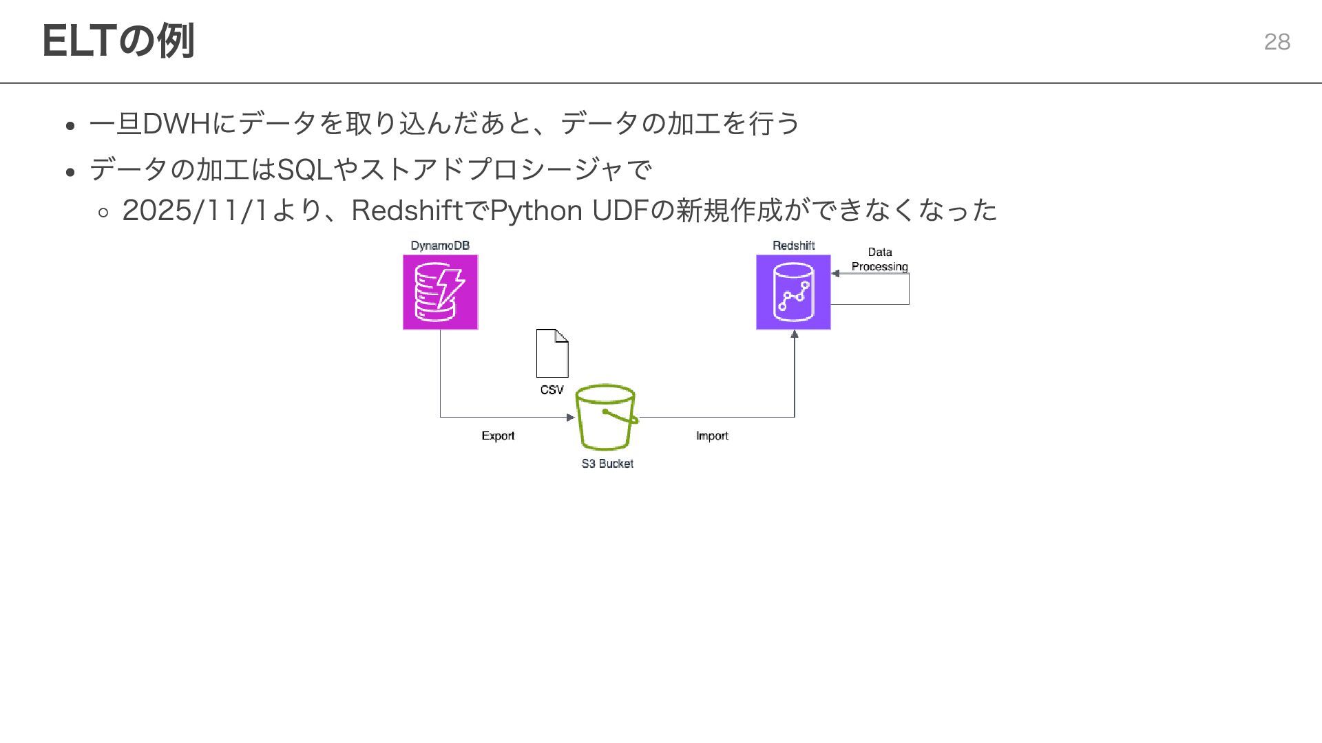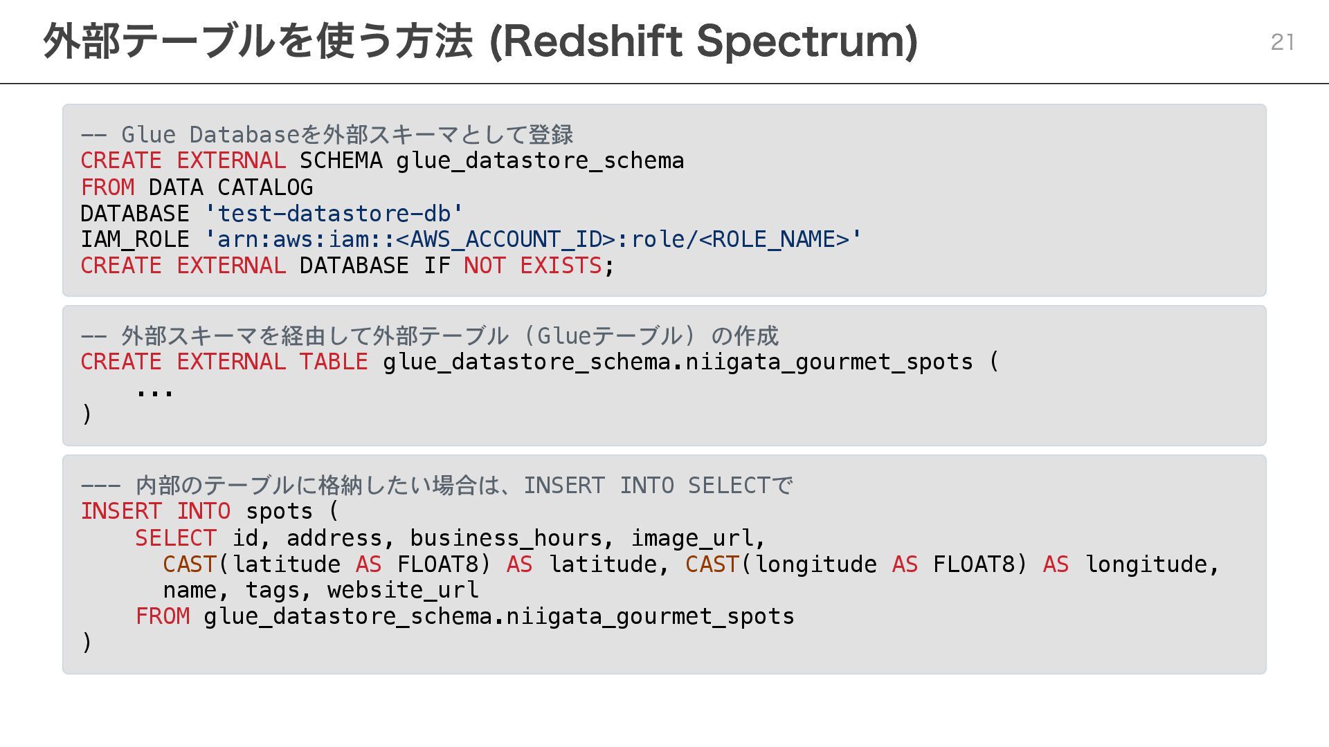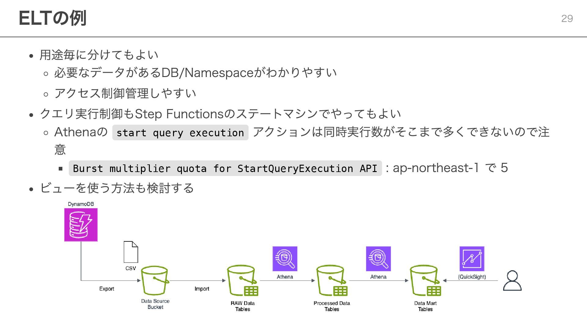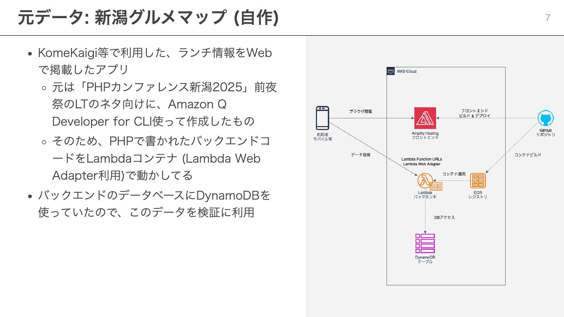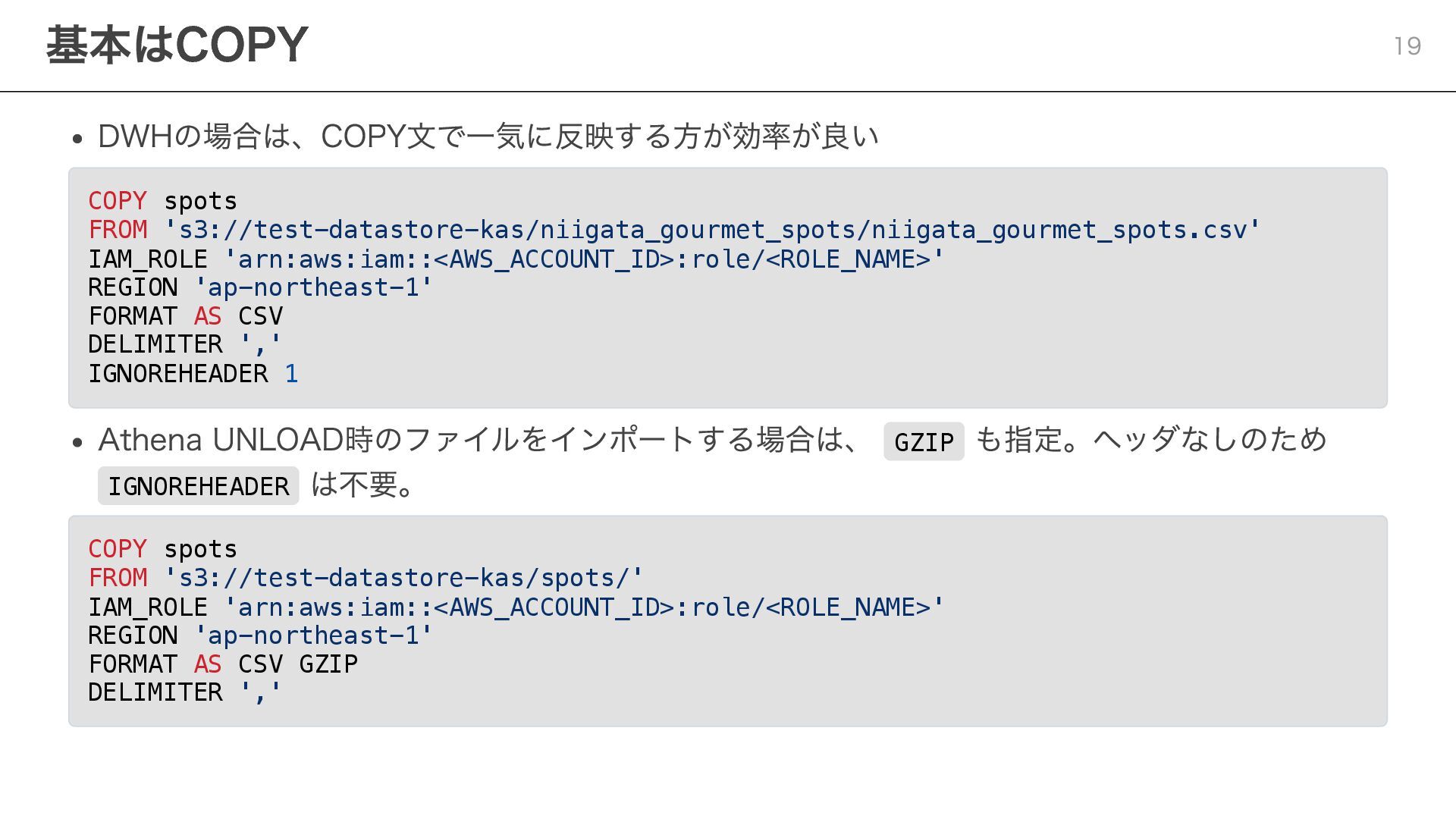 | [.id.S, .address.S, .business_hour.S, .image_url.S, .latitude.N, .longitude.N, .name.S, .website_url.S] | @csv' \ > spots.csv ちょっと工夫して、タグも文字列連結して出力 aws dynamodb scan --table-name niigata_gourmet_spots | \ jq -r '.Items[] | [.id.S, .address.S, .business_hour.S, .image_url.S, .latitude.N, .longitude.N, .name.S, ([.tags.L[].S] | join(",")), .website_url.S] | @csv' \ > spots.csv ヘッダ行が必要な場合は、ヘッダ用の配列を追加しておく。 aws dynamodb scan --table-name niigata_gourmet_spots | \ jq -r '["id","address","business_hour","image_url","latitude","longitude","name","tags","website_url"], (.Items[] | [.id.S, .address.S, .business_hour.S, .image_url.S, .latitude.N, .longitude.N, .name.S, ([.tags.L[].S] | join(",")), .website_url.S]) | @csv' \ > spots.csv jqで応用は効くが、面倒ではある AWS CLIでCSV出力 13