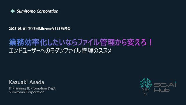 エンドユーザーへのモダンファイル管理のススメ Kazuaki Asada IT Planning & Promotion Dept. Sumitomo Corporation