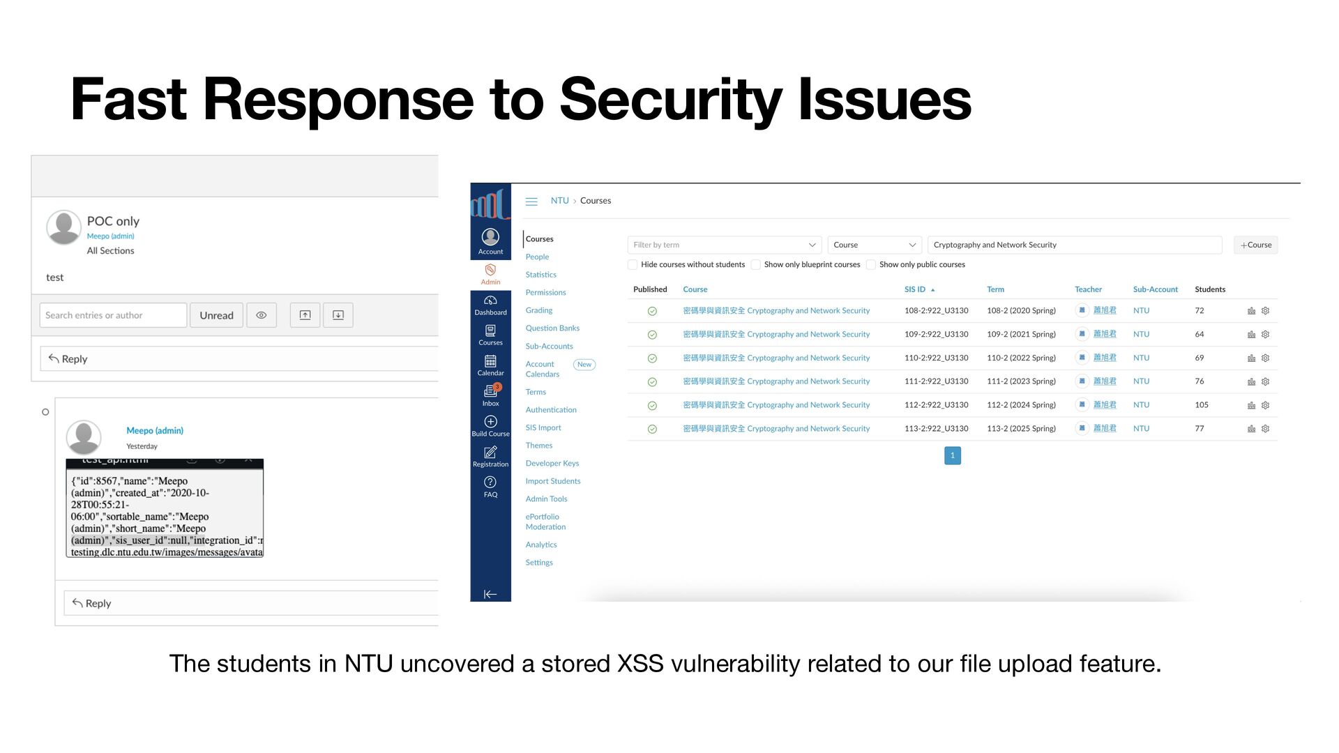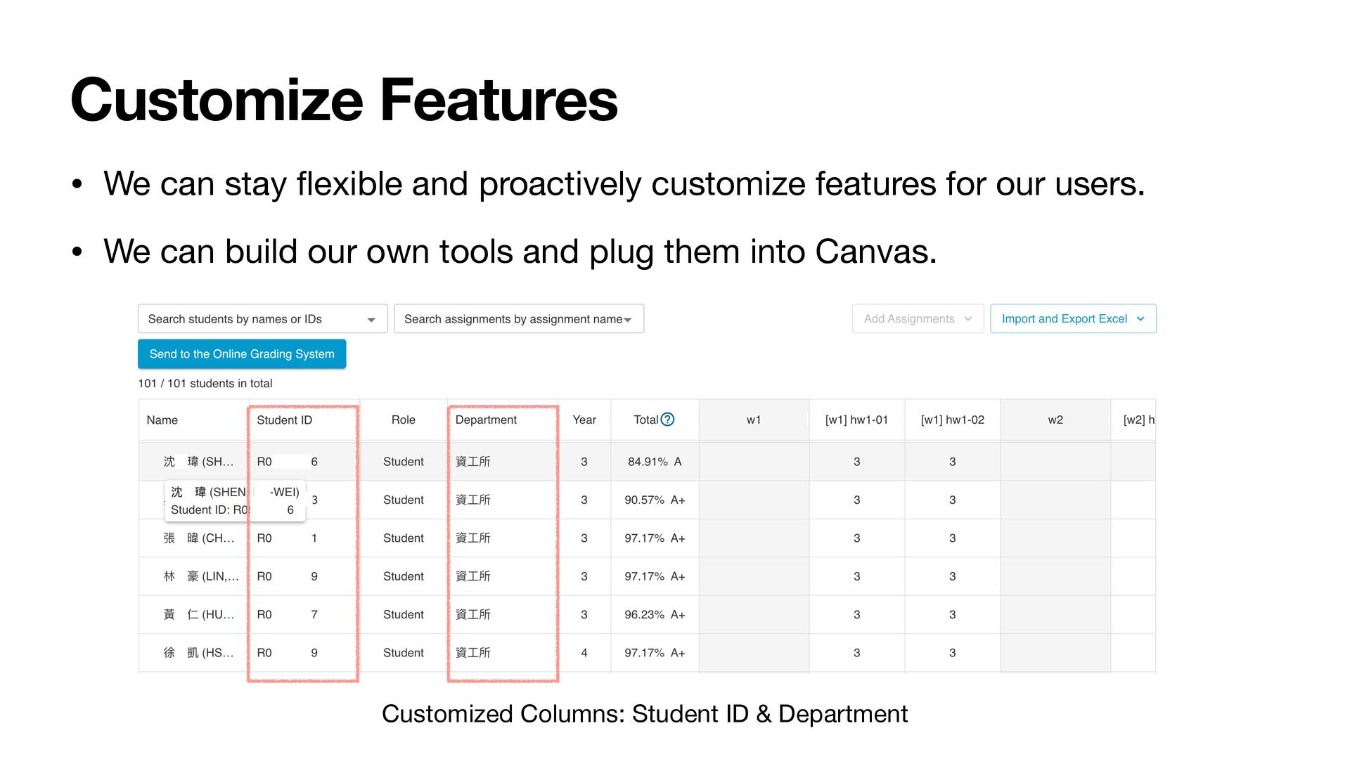 • The upstream status quo in Canvas LMS and our approaches to adapting it