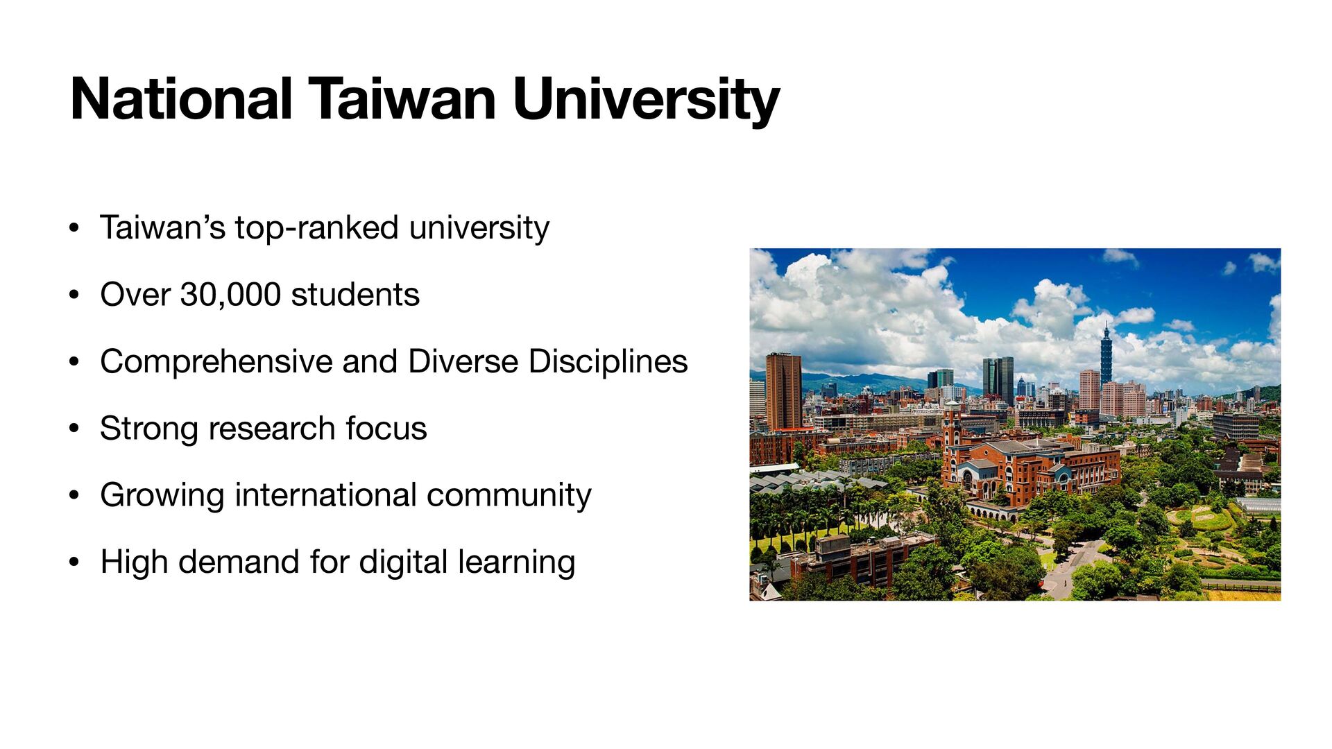 • How Taiwan’s regional context and higher-education needs shape the challenges when working on an evolving digital learning platform