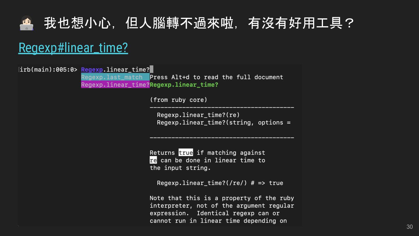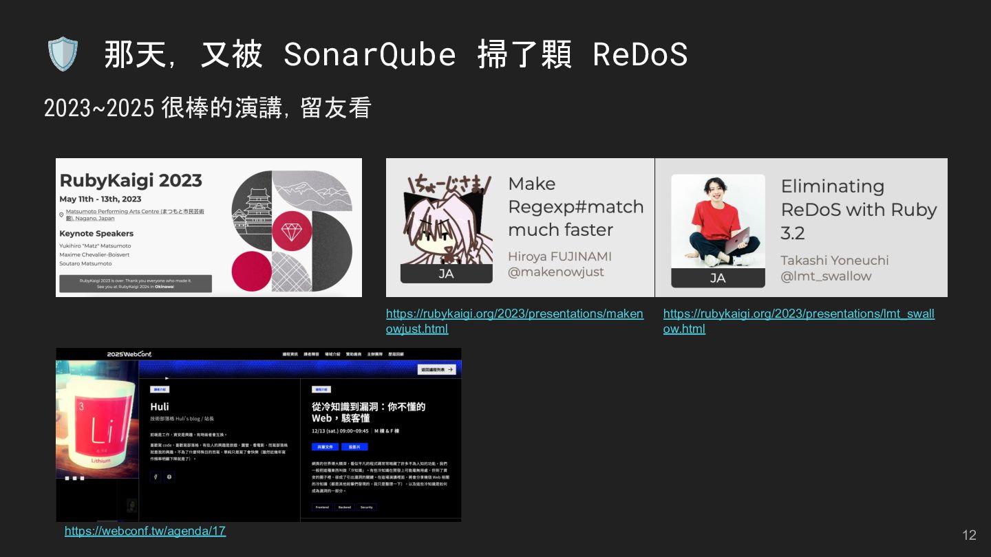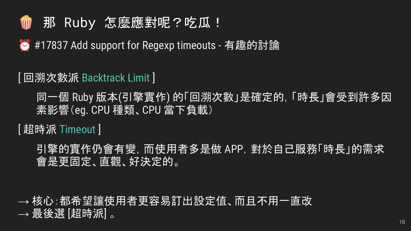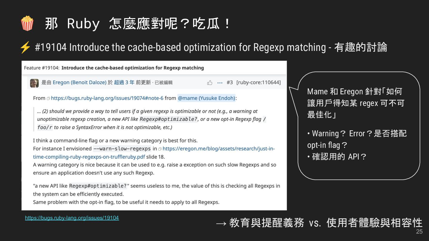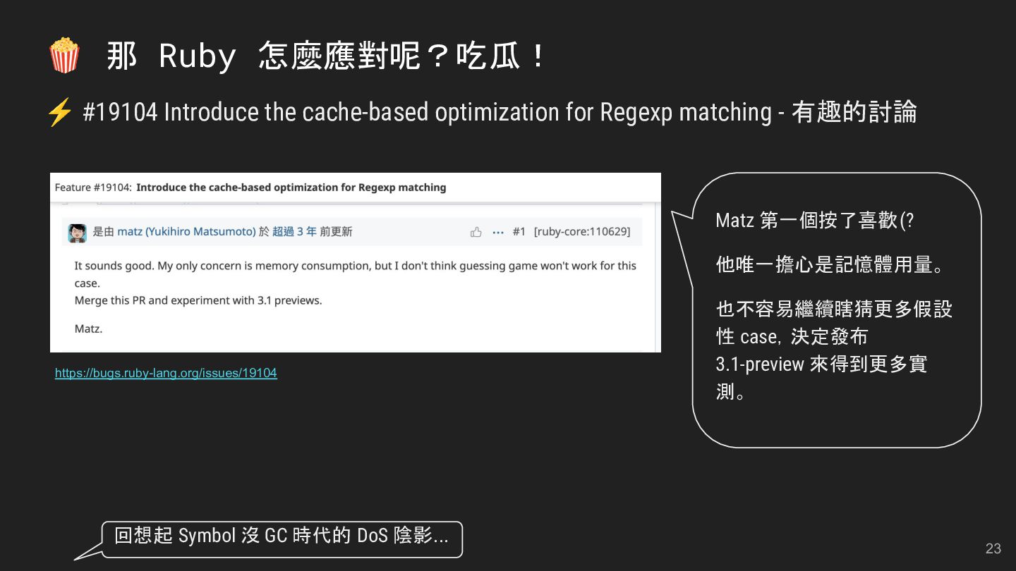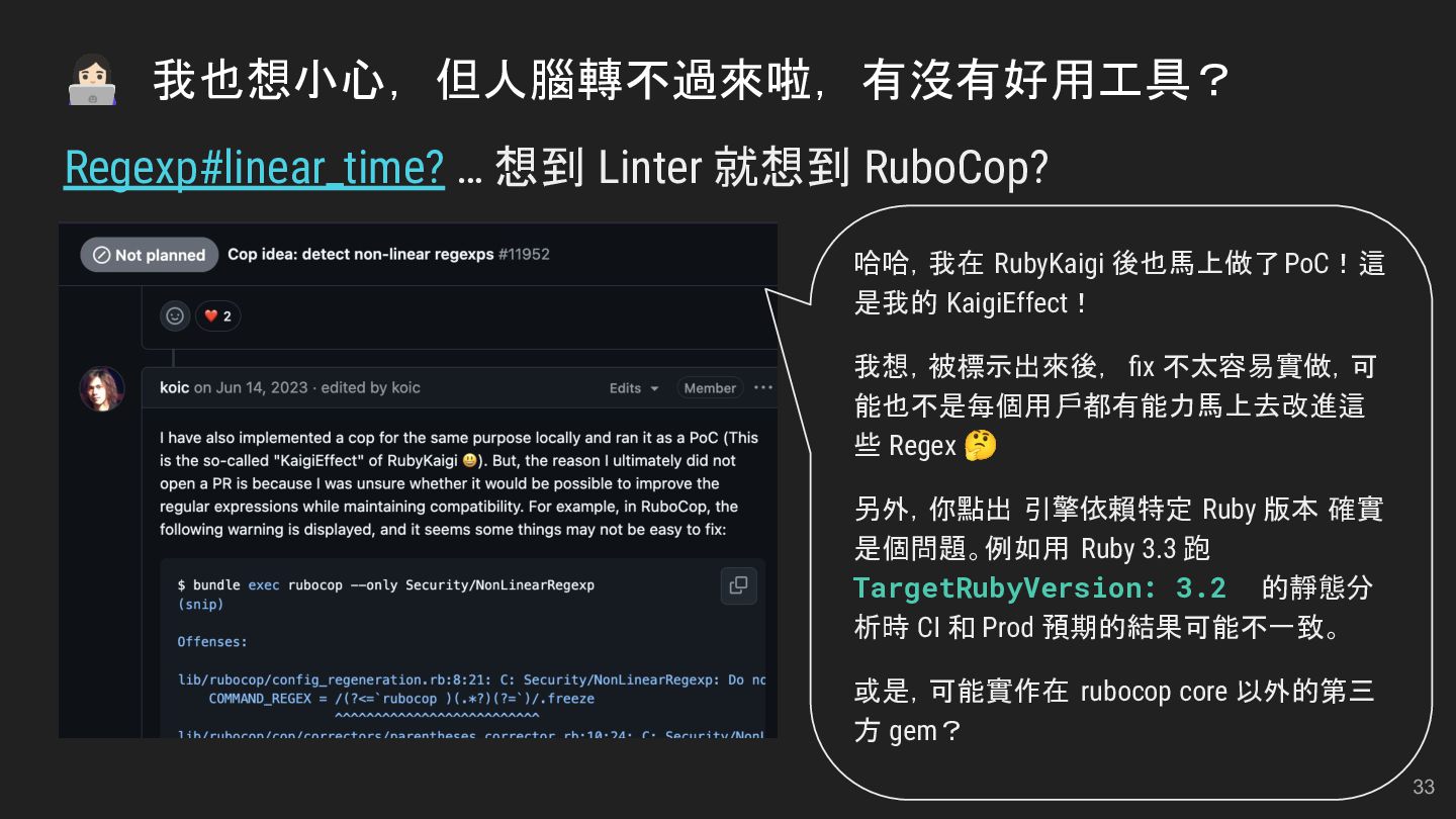 WebConf 2025 Huli 的演講重燃大家對 ReDoS 的關注,那 Ruby 圈是如何應對此安全性議題呢?