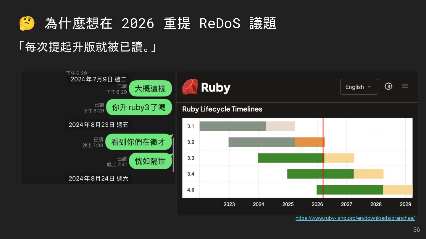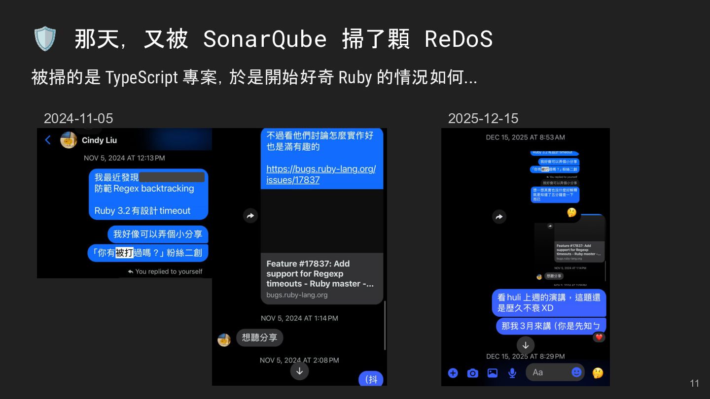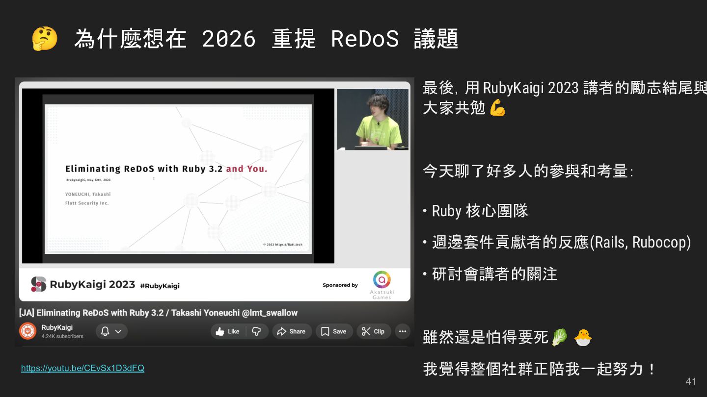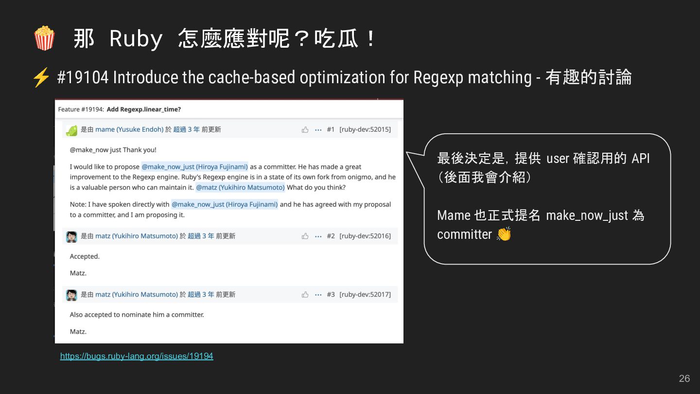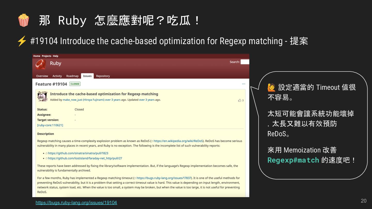 WebConf 2025 Huli 的演講重燃大家對 ReDoS 的關注,那 Ruby 圈是如何應對此安全性議題呢?