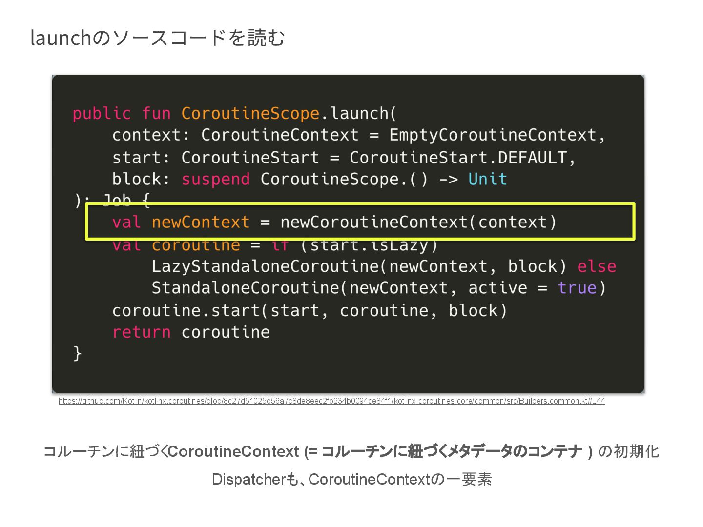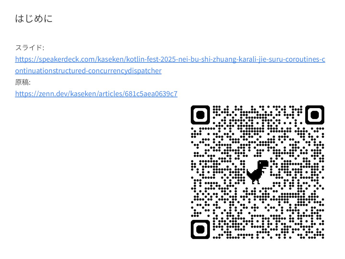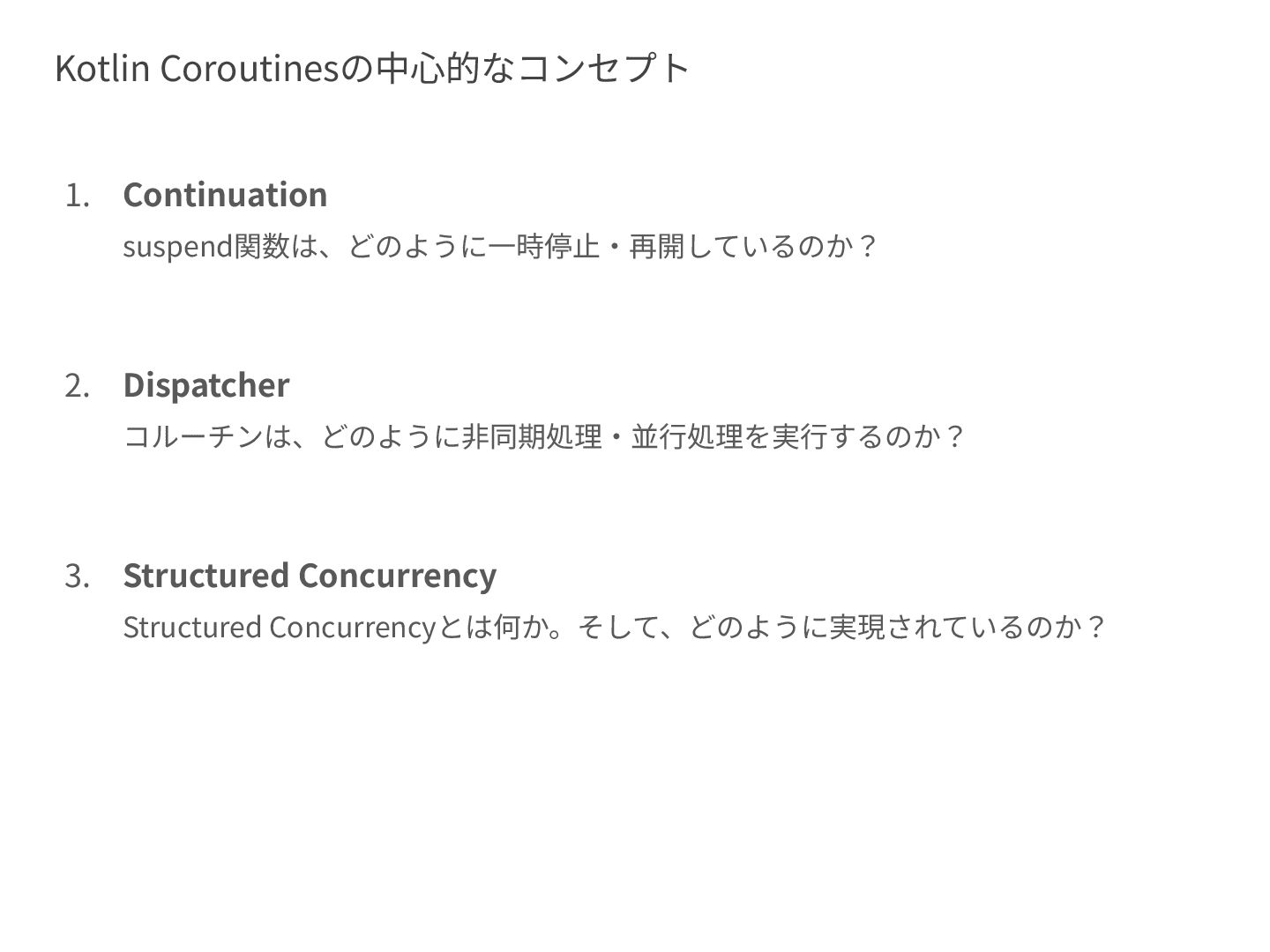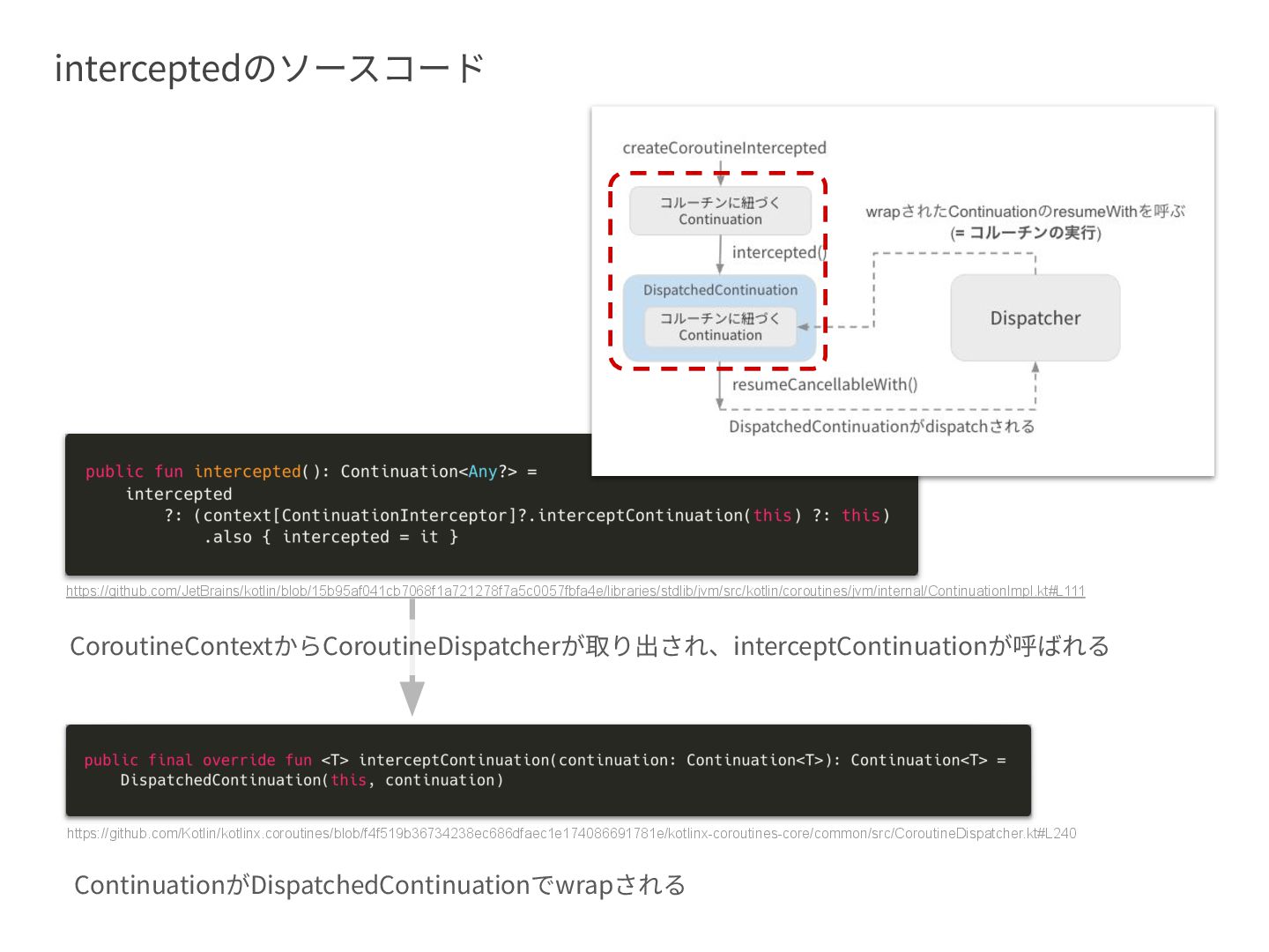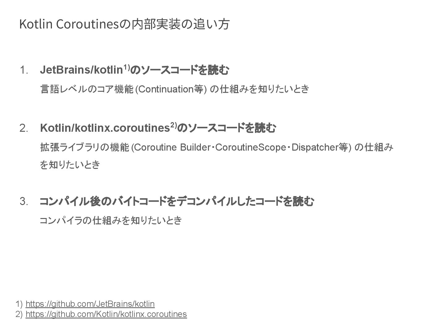 Worker (タスク実行中) Worker (タスク実行中) Worker (タスク実行中) TaskQueue LimitedDispatcher Worker Worker Worker Dispatchers.IOに コルーチンをdispatch 前段のLimitedDispatcherで 実⾏中のコルーチン数が指定した並列数以下になるよう制限される 並列数を超える場合 このキューで待機 Workerの個数を 並列数以下に制御 Ref) https://github.com/Kotlin/kotlinx.coroutines/blob/8c27d51025d56a7b8de8eec2fb234b0094ce84f1/kotlinx-coroutines-core/common/src/internal/LimitedDispatcher.kt#L22
