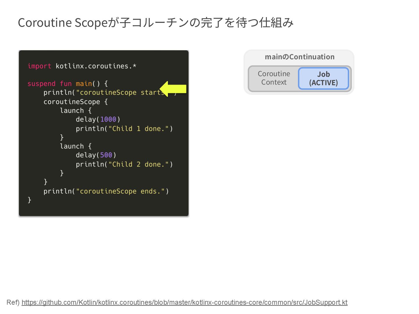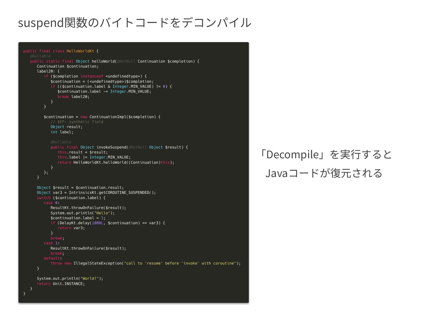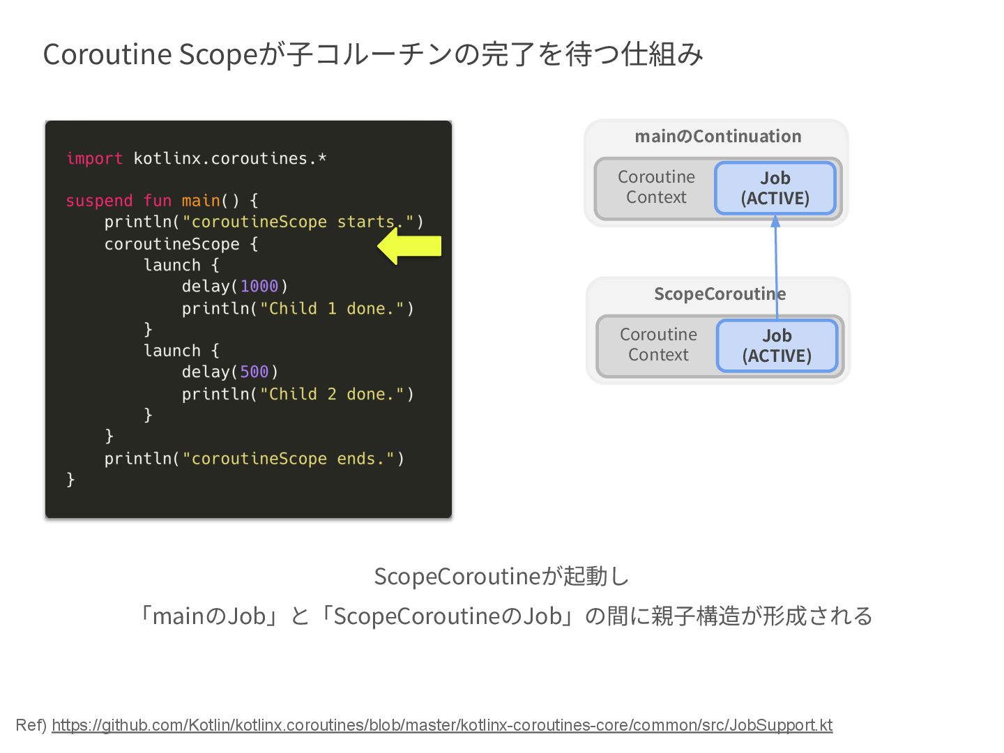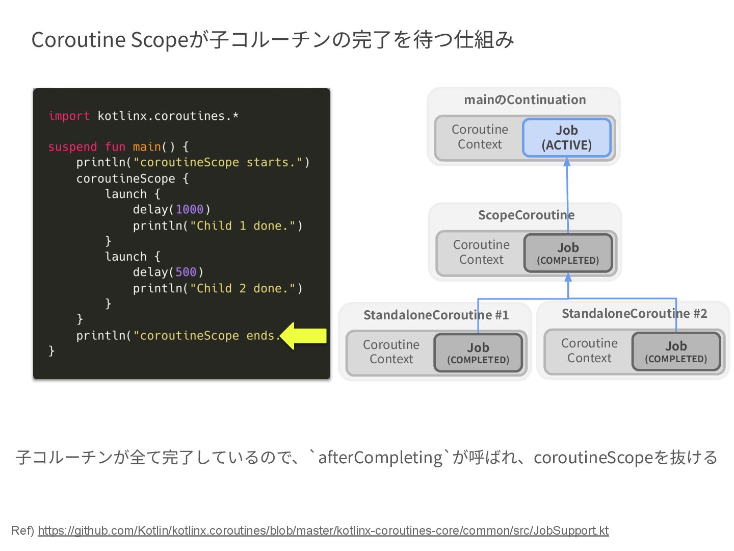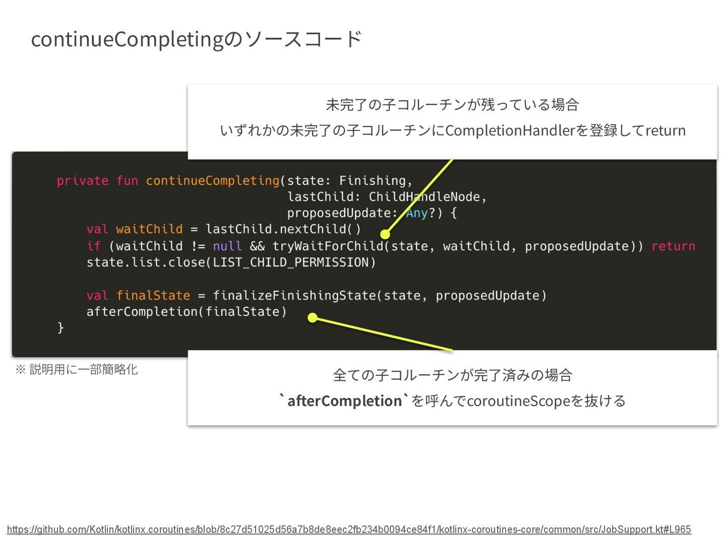Worker (タスク実行中) Worker (タスク実行中) Worker (タスク実行中) TaskQueue LimitedDispatcher Worker Worker Worker Dispatchers.IOに コルーチンをdispatch 前段のLimitedDispatcherで 実⾏中のコルーチン数が指定した並列数以下になるよう制限される 並列数を超える場合 このキューで待機 Workerの個数を 並列数以下に制御 Ref) https://github.com/Kotlin/kotlinx.coroutines/blob/8c27d51025d56a7b8de8eec2fb234b0094ce84f1/kotlinx-coroutines-core/common/src/internal/LimitedDispatcher.kt#L22