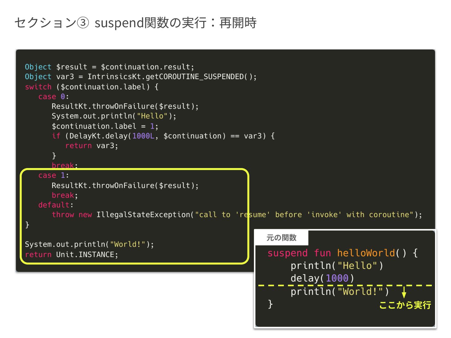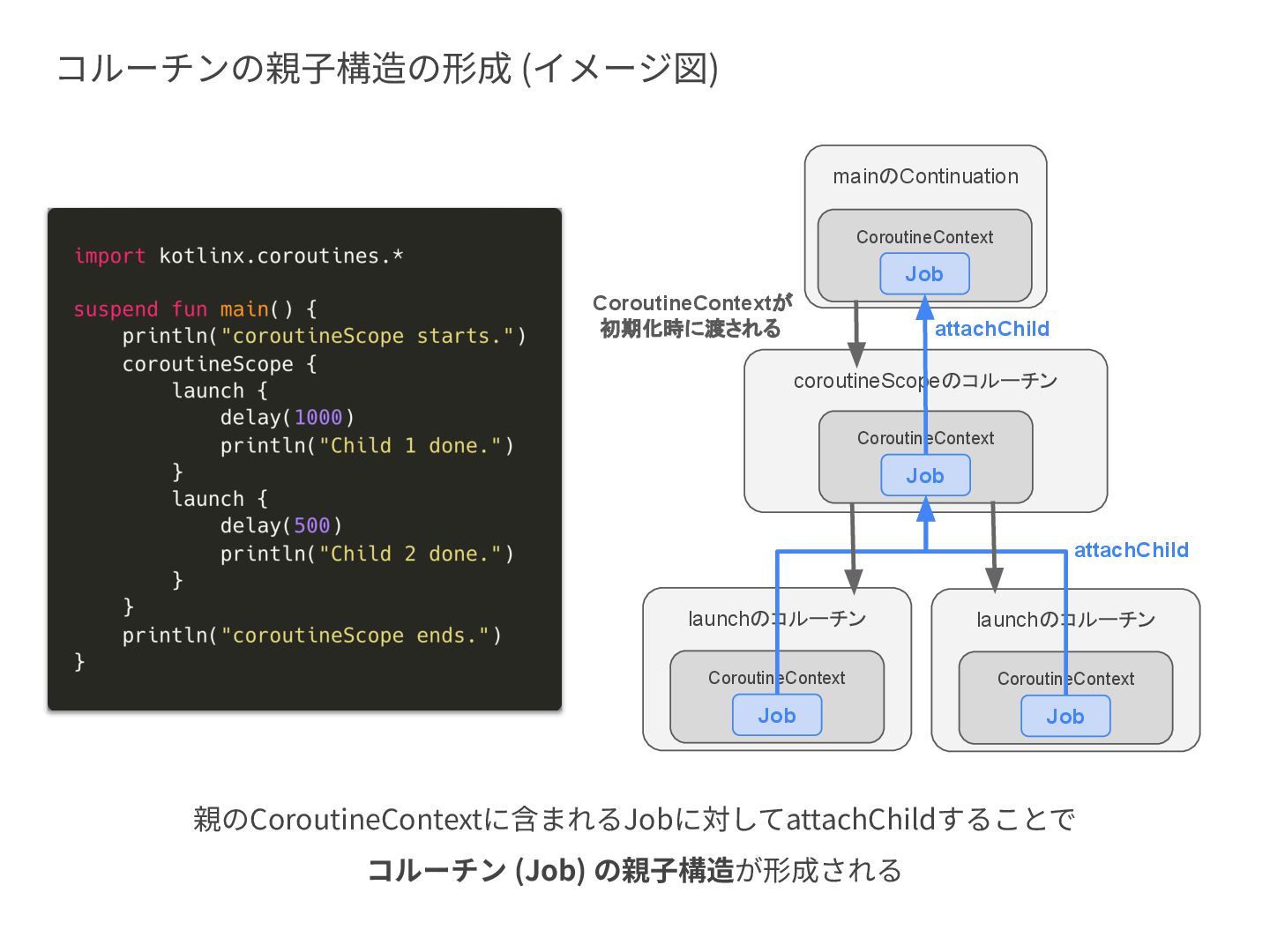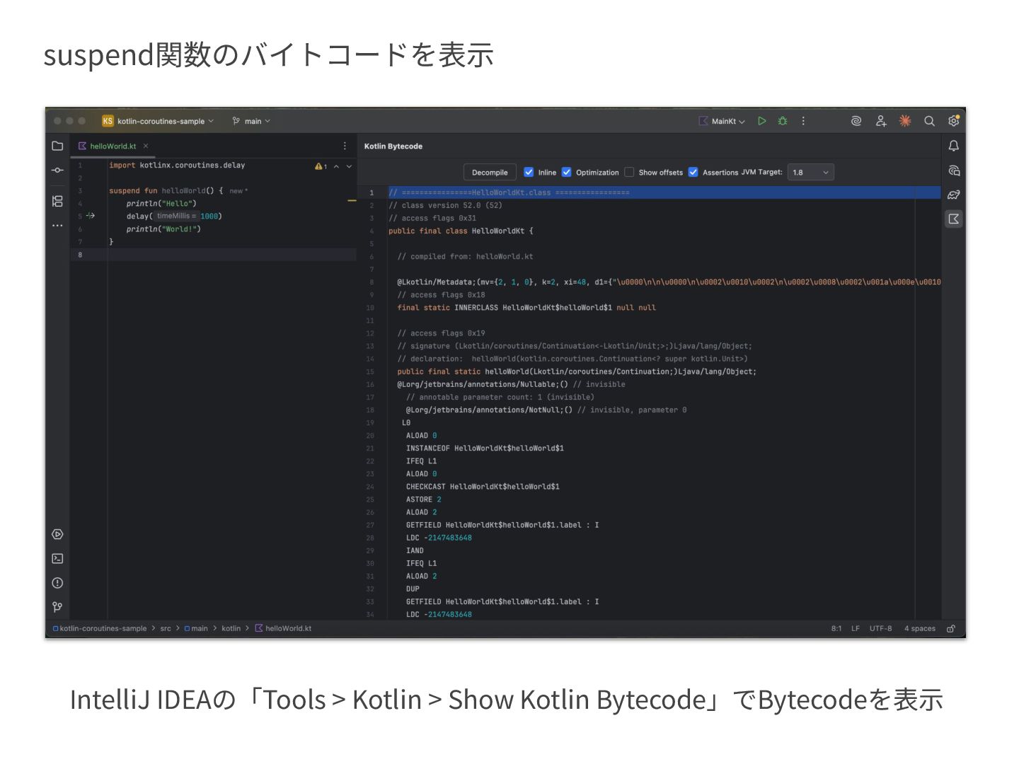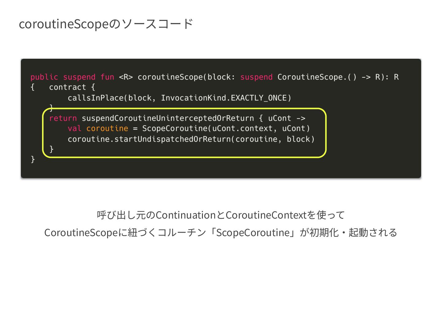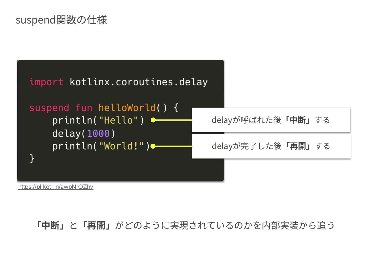 Worker (タスク実行中) Worker (タスク実行中) Worker (タスク実行中) TaskQueue LimitedDispatcher Worker Worker Worker Dispatchers.IOに コルーチンをdispatch 前段のLimitedDispatcherで 実⾏中のコルーチン数が指定した並列数以下になるよう制限される 並列数を超える場合 このキューで待機 Workerの個数を 並列数以下に制御 Ref) https://github.com/Kotlin/kotlinx.coroutines/blob/8c27d51025d56a7b8de8eec2fb234b0094ce84f1/kotlinx-coroutines-core/common/src/internal/LimitedDispatcher.kt#L22