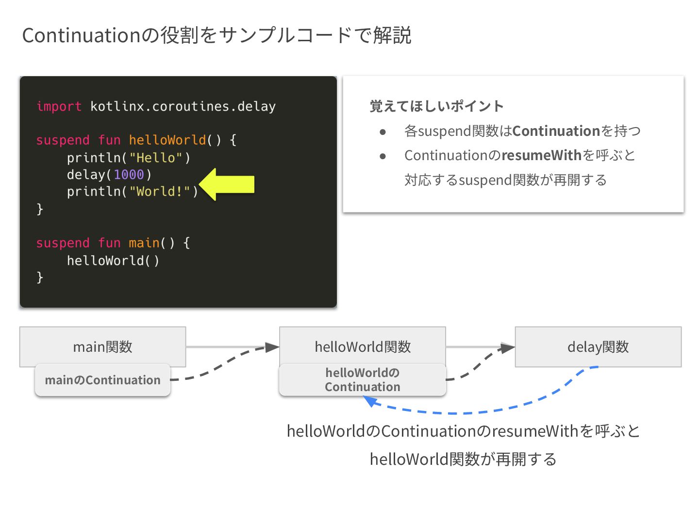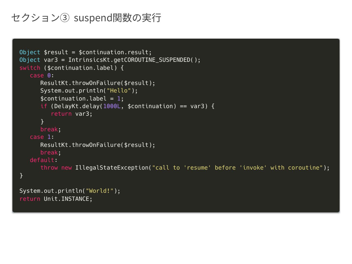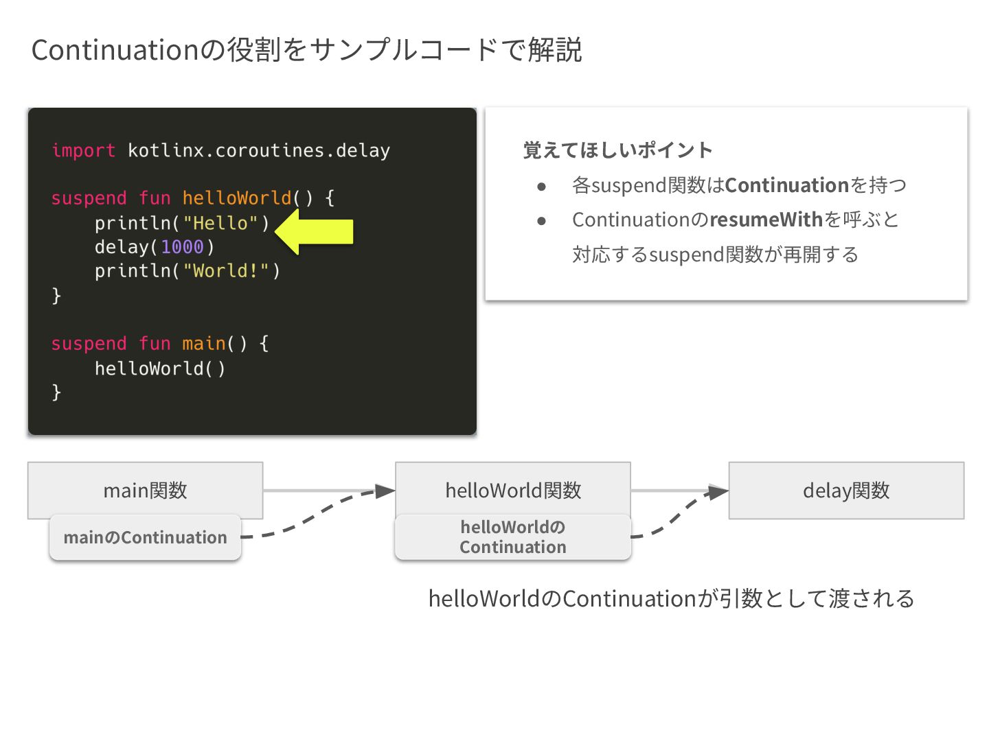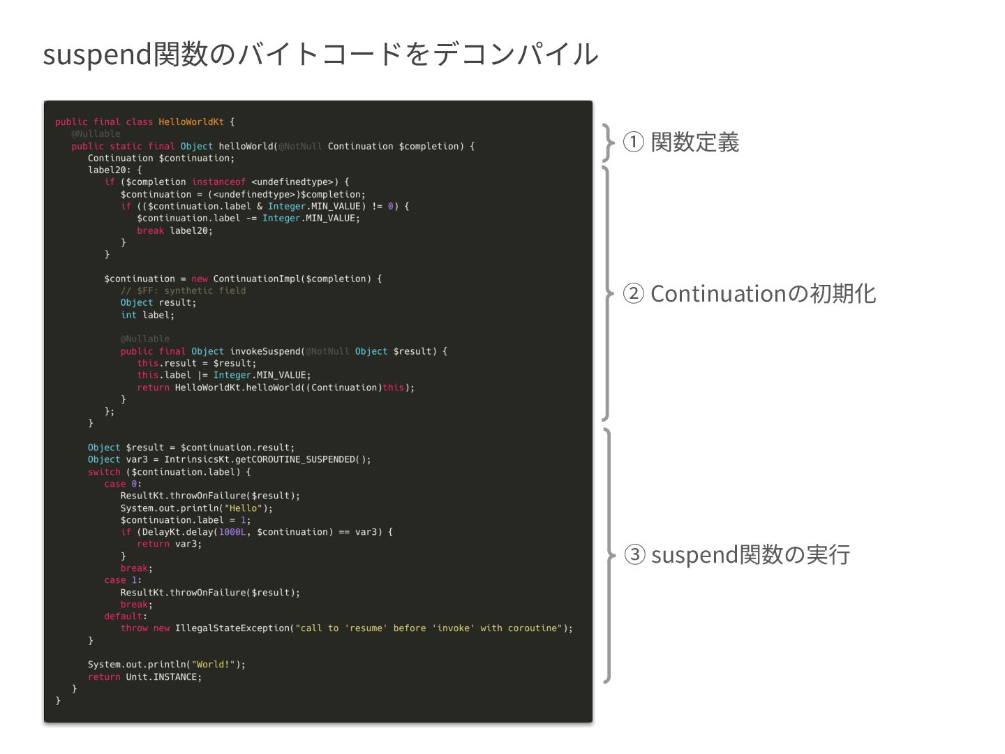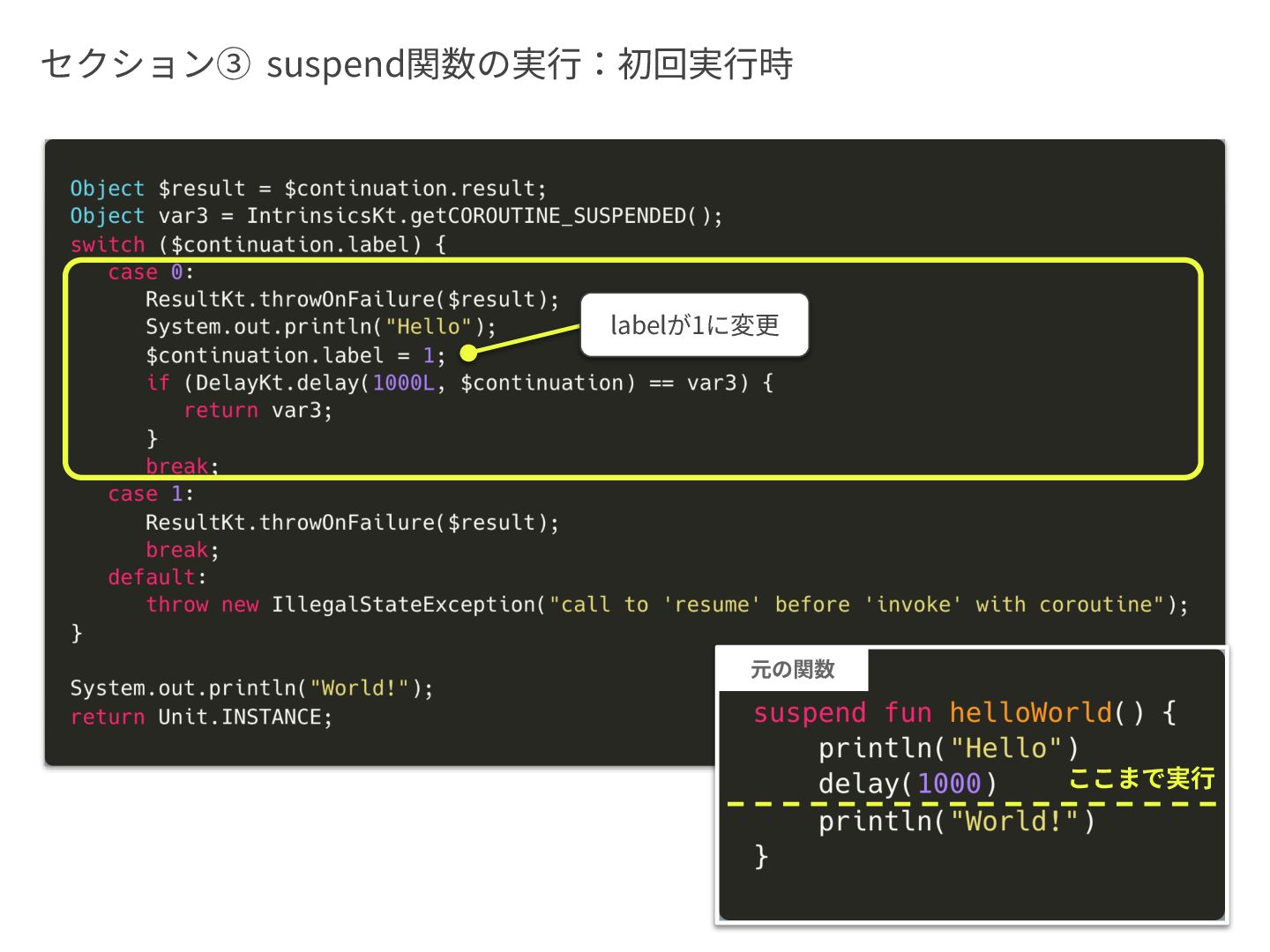 Worker (タスク実行中) Worker (タスク実行中) Worker (タスク実行中) TaskQueue LimitedDispatcher Worker Worker Worker Dispatchers.IOに コルーチンをdispatch 前段のLimitedDispatcherで 実⾏中のコルーチン数が指定した並列数以下になるよう制限される 並列数を超える場合 このキューで待機 Workerの個数を 並列数以下に制御 Ref) https://github.com/Kotlin/kotlinx.coroutines/blob/8c27d51025d56a7b8de8eec2fb234b0094ce84f1/kotlinx-coroutines-core/common/src/internal/LimitedDispatcher.kt#L22