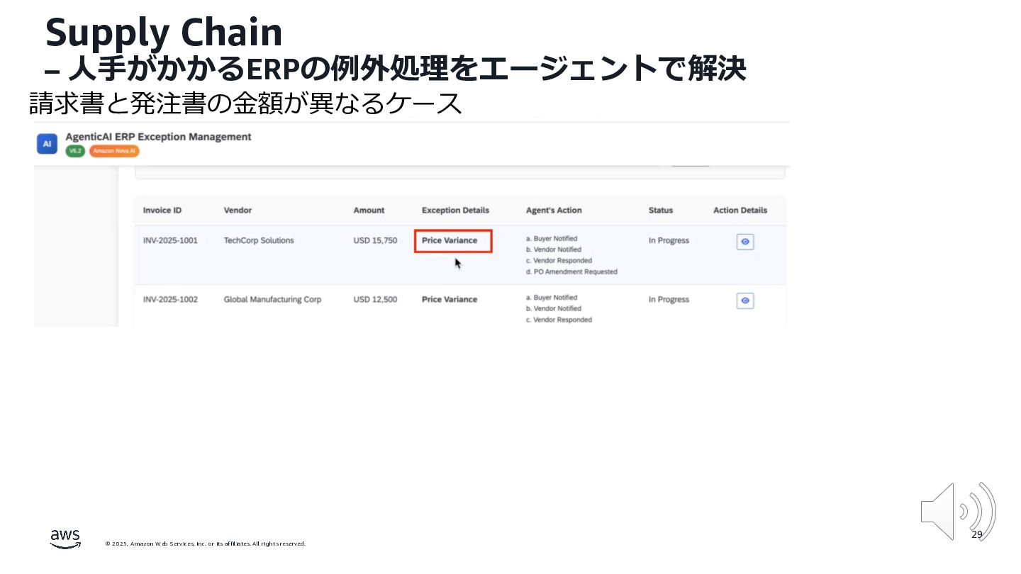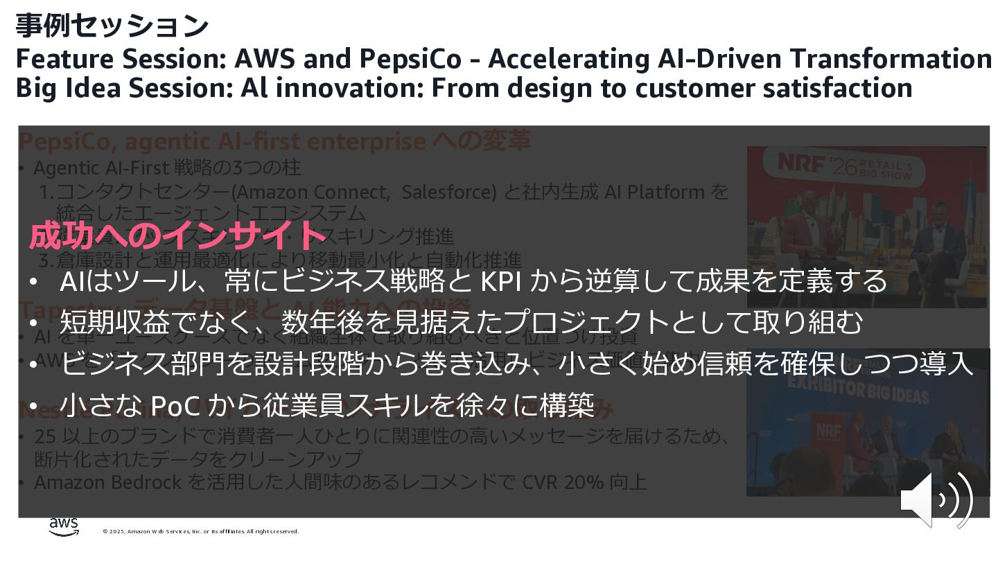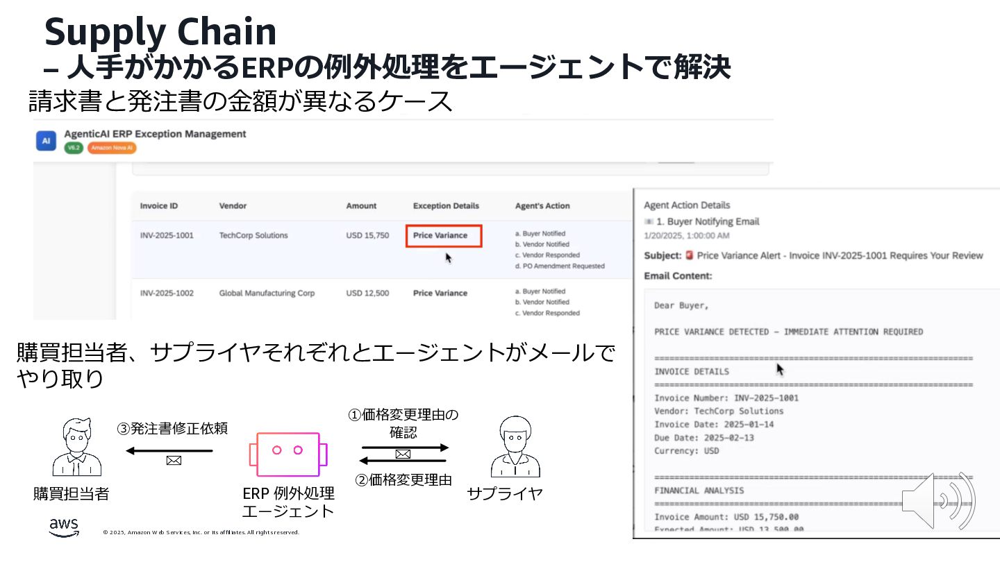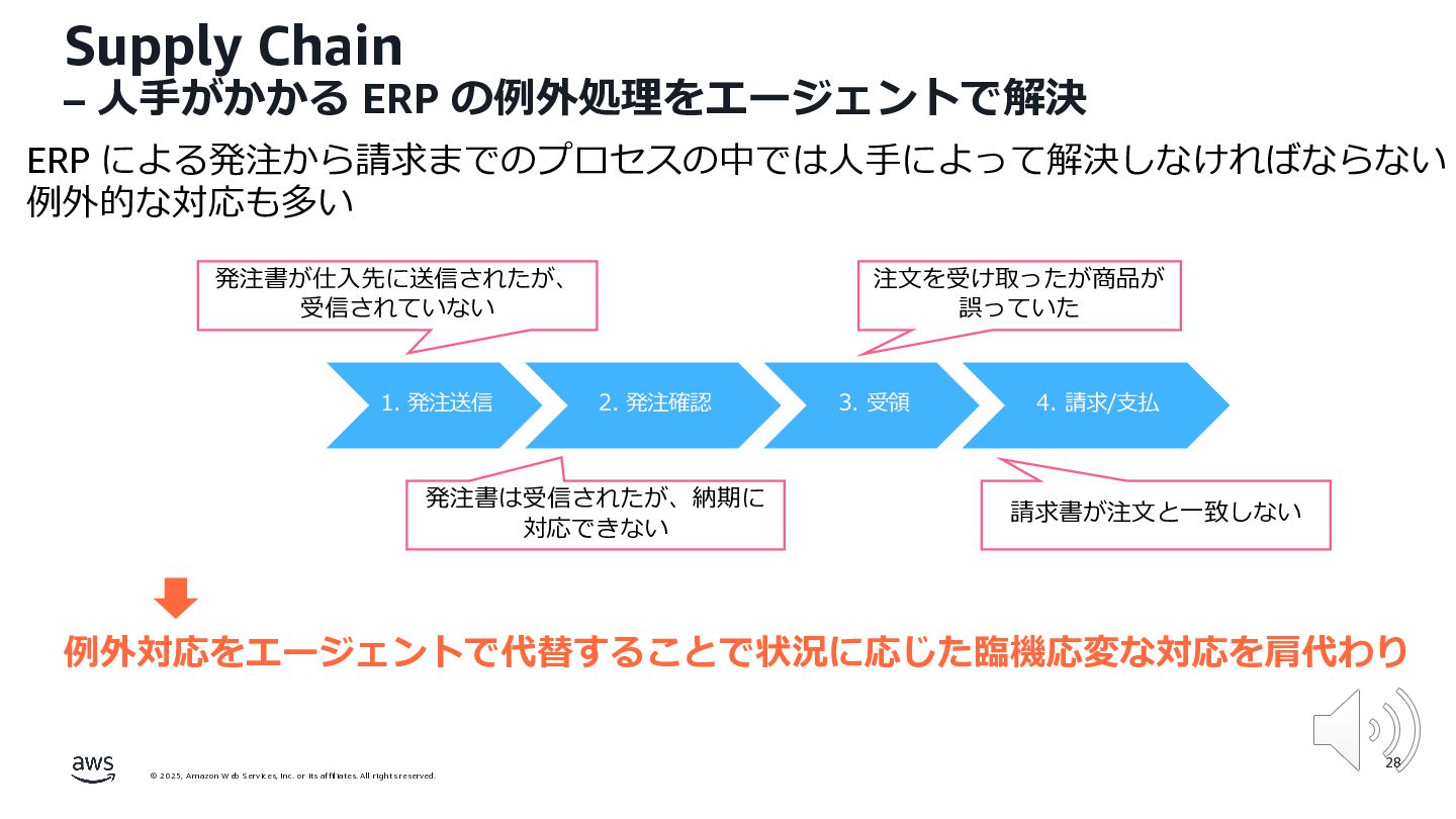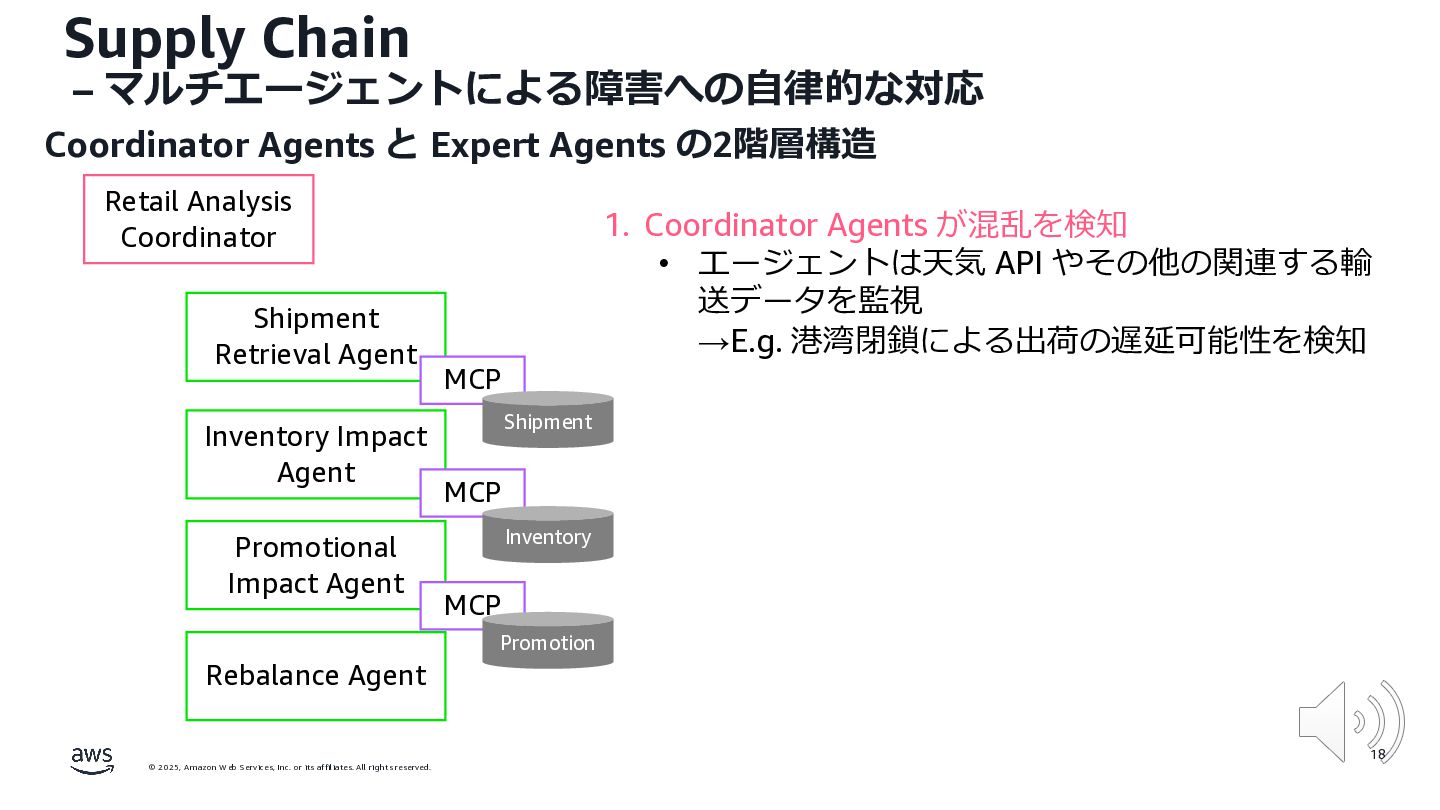 rights reserved. 12 Build the Future with AI • ⽣成AIからAgentic AI(エージェント型 AI )へのシフト • 単⼀のタスクではなく、多様かつ複雑な課題を⾃律的に解決する「従業員(Agent)」 Core Technologies • 基盤モデル: Amazon Bedrock Amazon Nova • エージェントプラットフォーム︓ Amazon Bedrock AgentCore (ビルダー向け), Amazon Quick Suite (Biz向け) AWS ブース - Build the Future with AI Supply Chain Luggage Lab Omni Channel Marketing Advertising Product Innovation