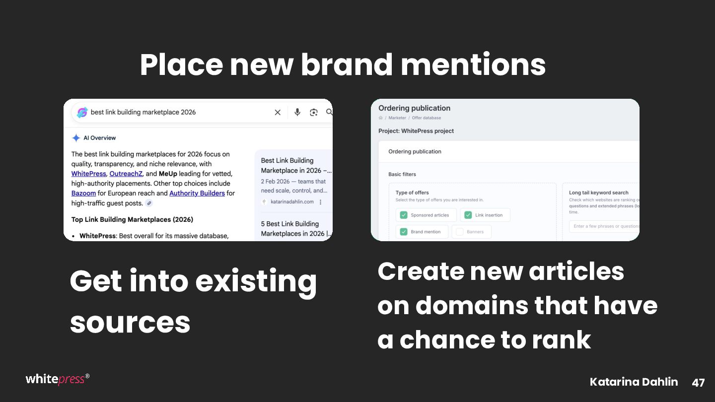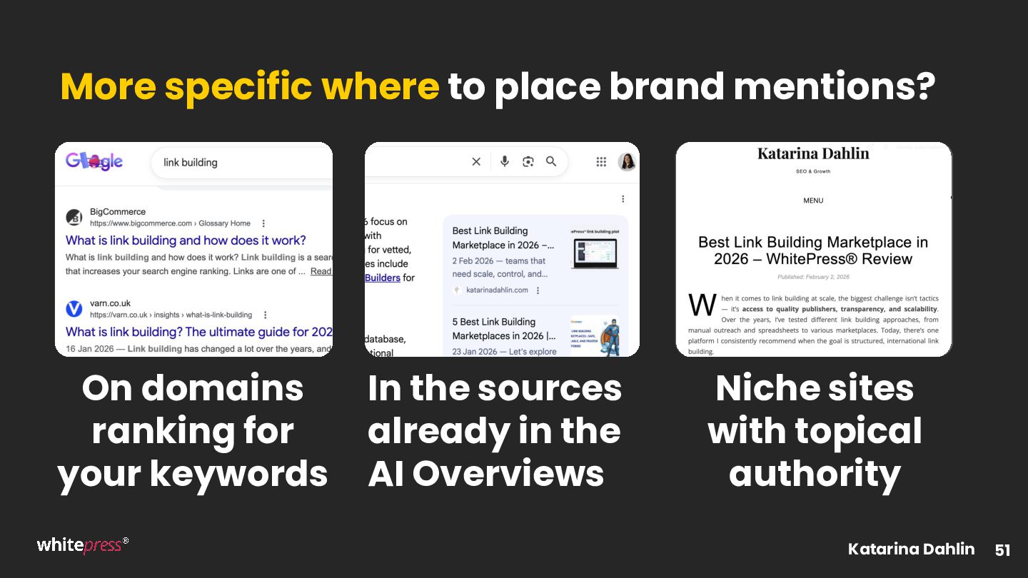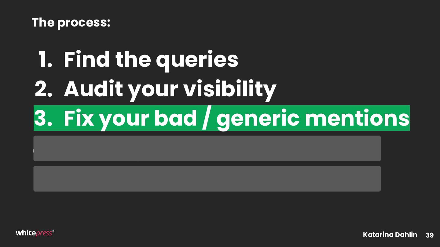 mentioned in the source? Can't get into existing source? Ask to improve your brand mention Ask to be added, as high as possible Create a new article on good domains A quick todo list 1 2 3 58
