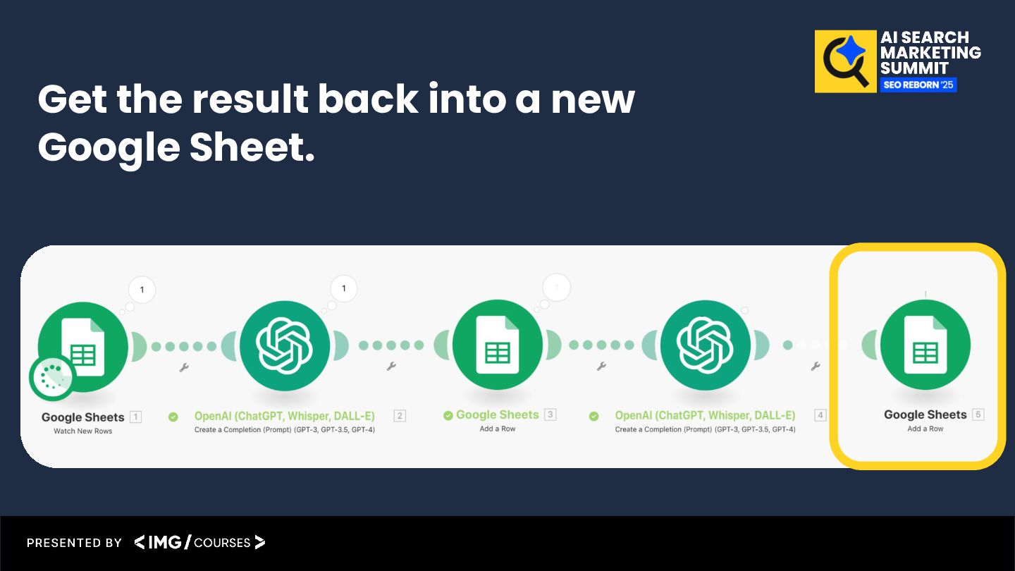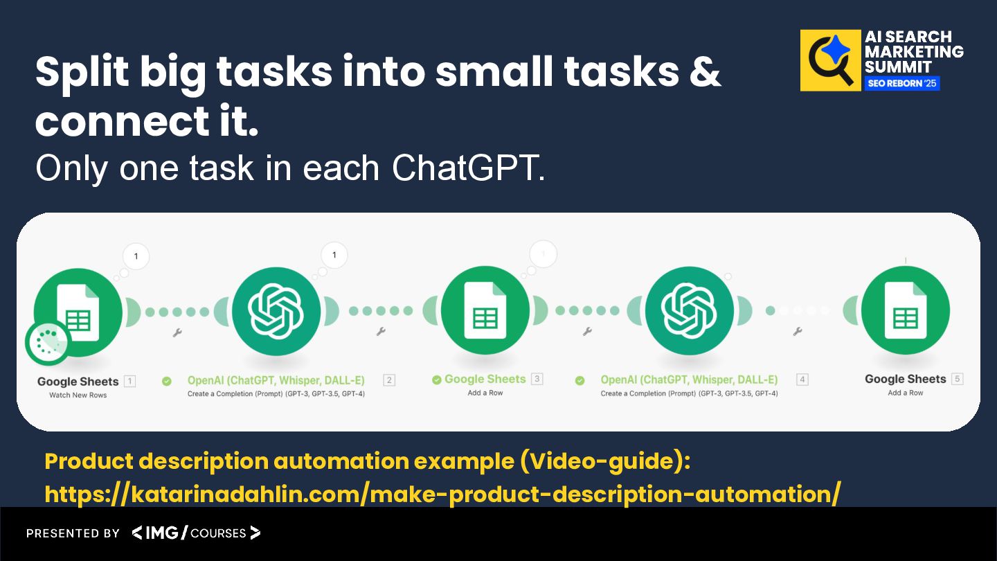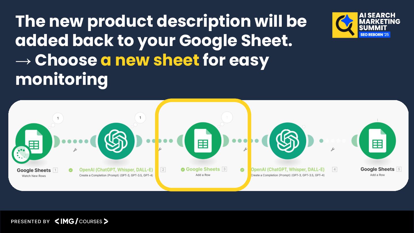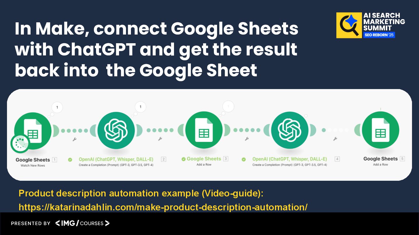 result back into the Google Sheet Product description automation example (Video-guide): https://katarinadahlin.com/make-product-description-automation/