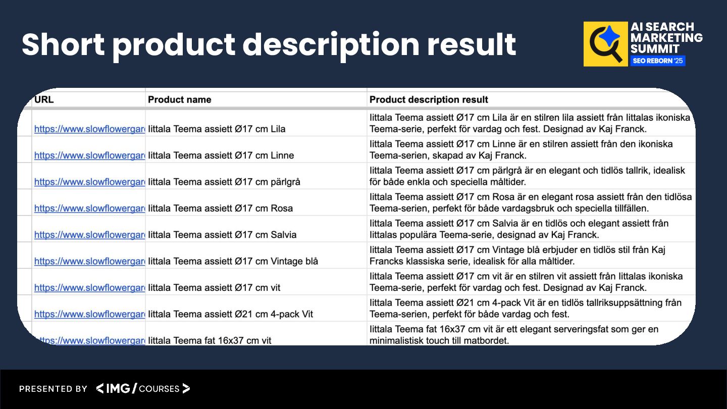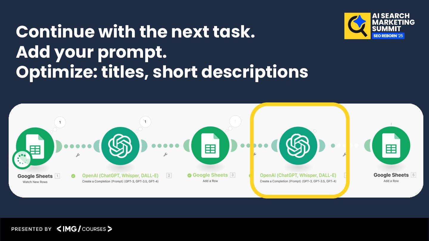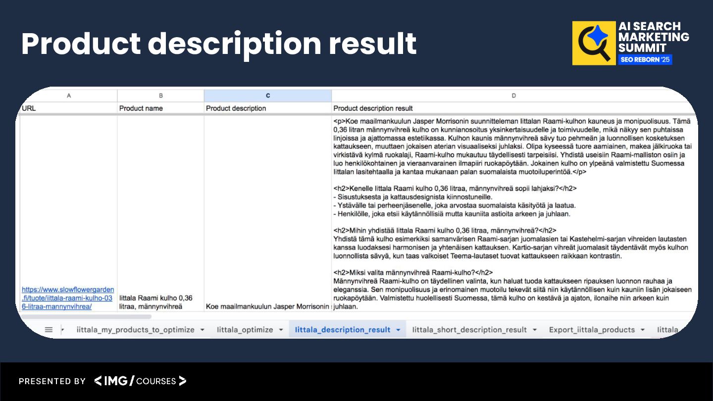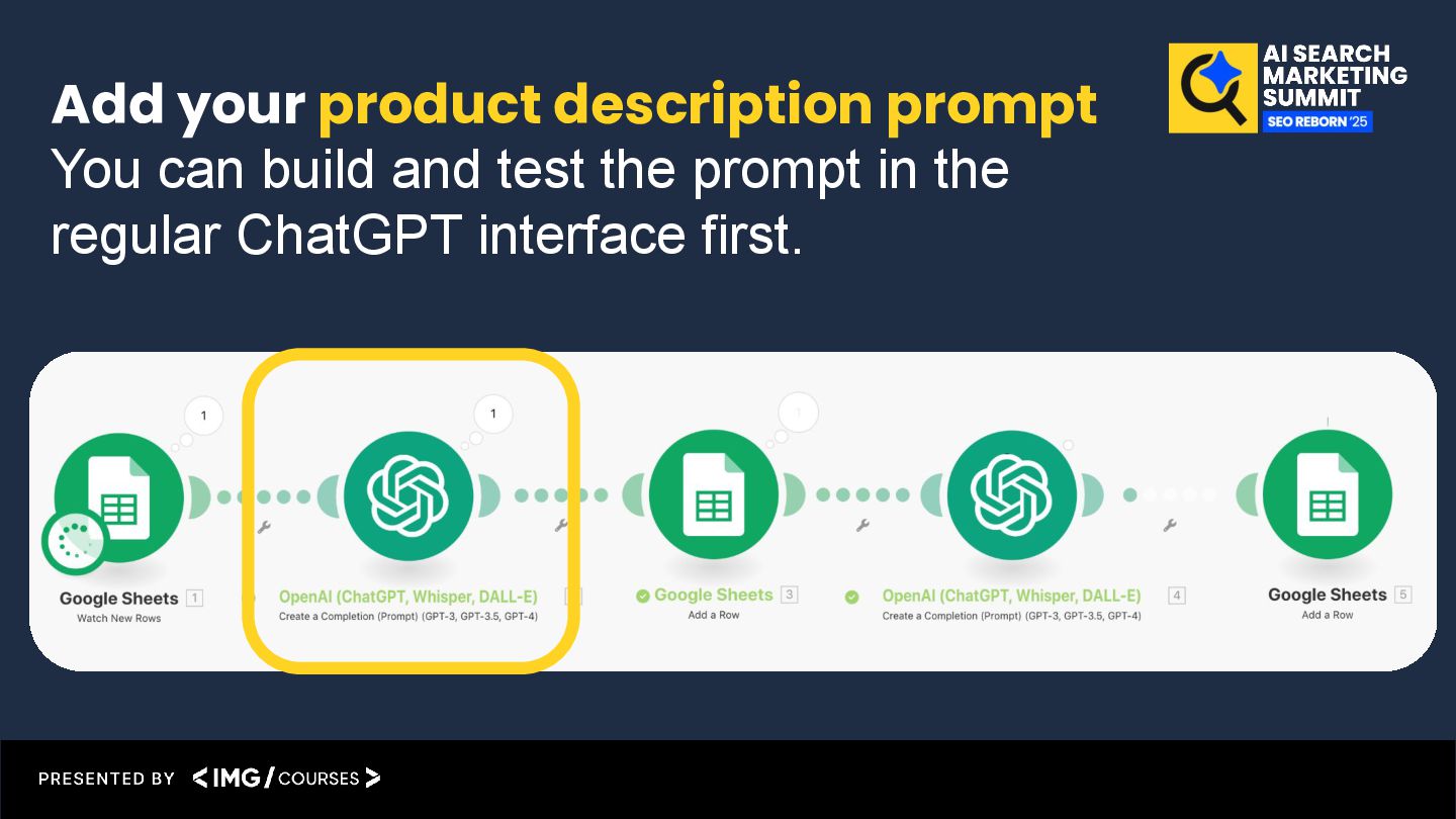 result back into the Google Sheet Product description automation example (Video-guide): https://katarinadahlin.com/make-product-description-automation/
