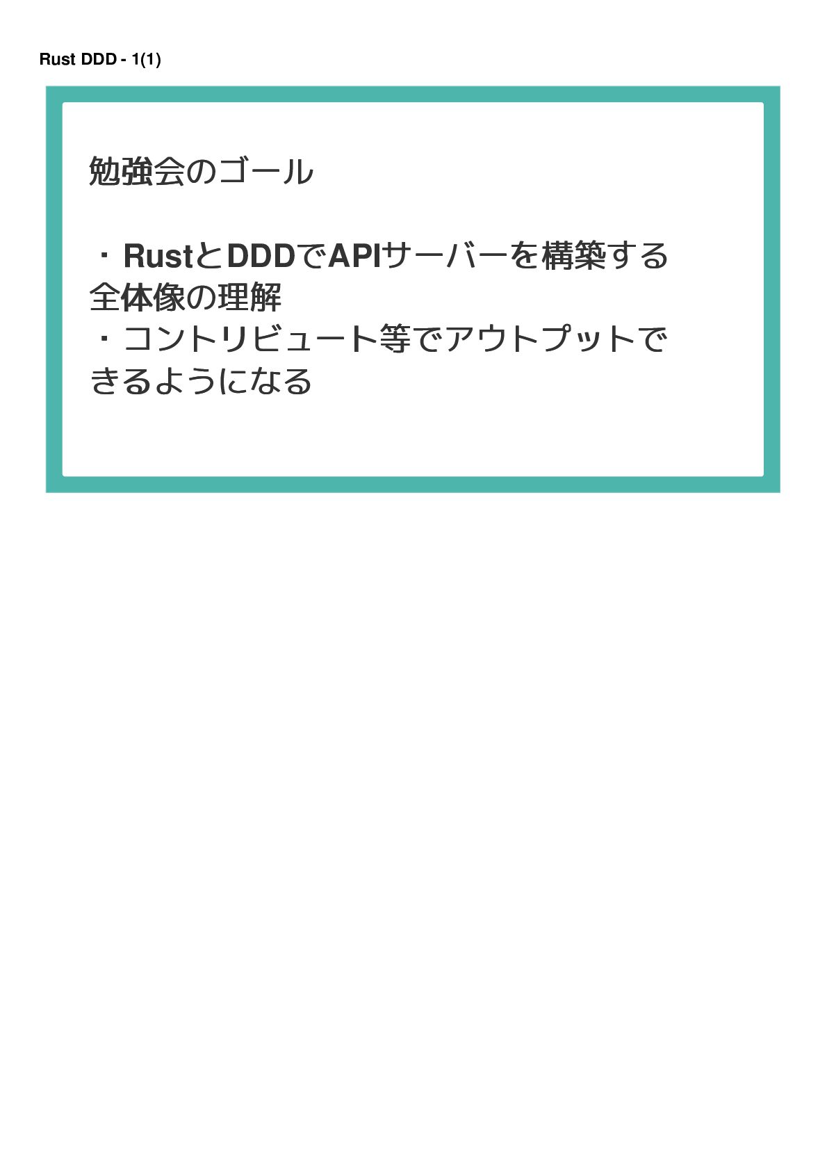 Rust DDD - 1(1) 勉強会のゴール 勉強会のゴール ・ ・Rustと とDDDで でAPIサーバーを構築する