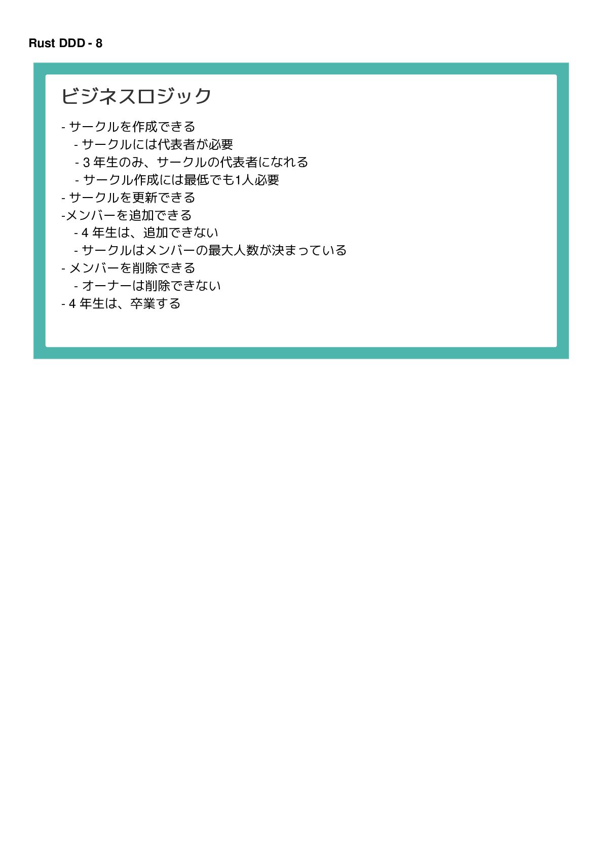 Rust DDD - 8 ビジネスロジック ビジネスロジック - サークルを作成できる - サークルには代表者が必要