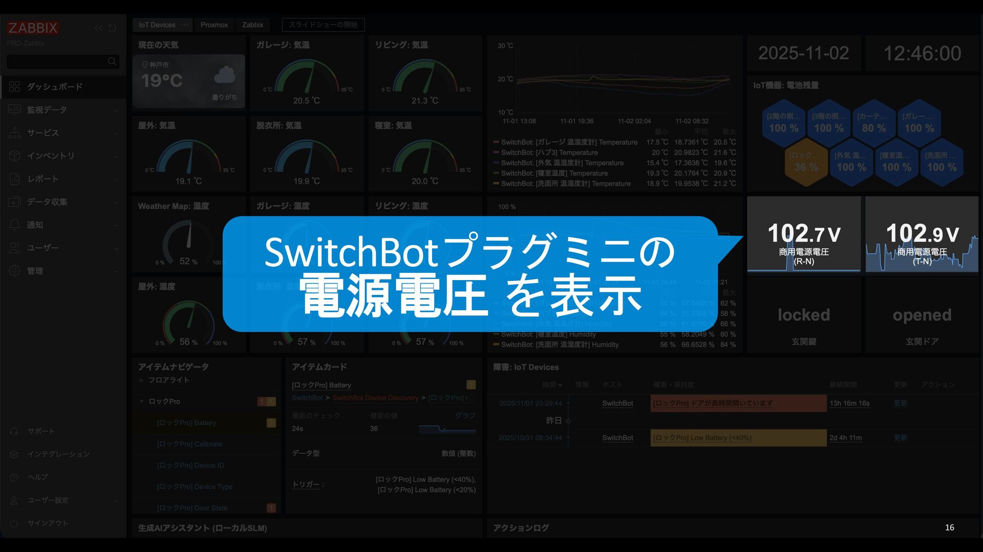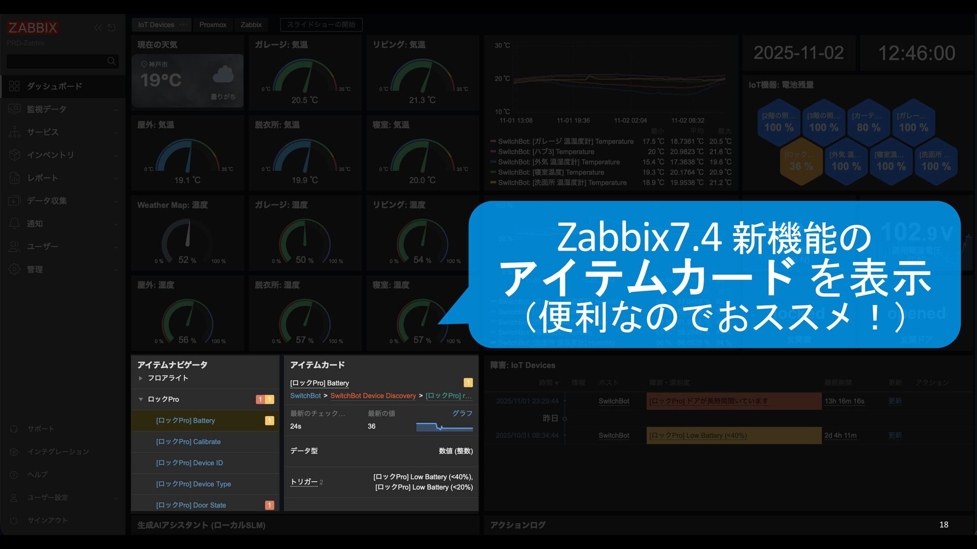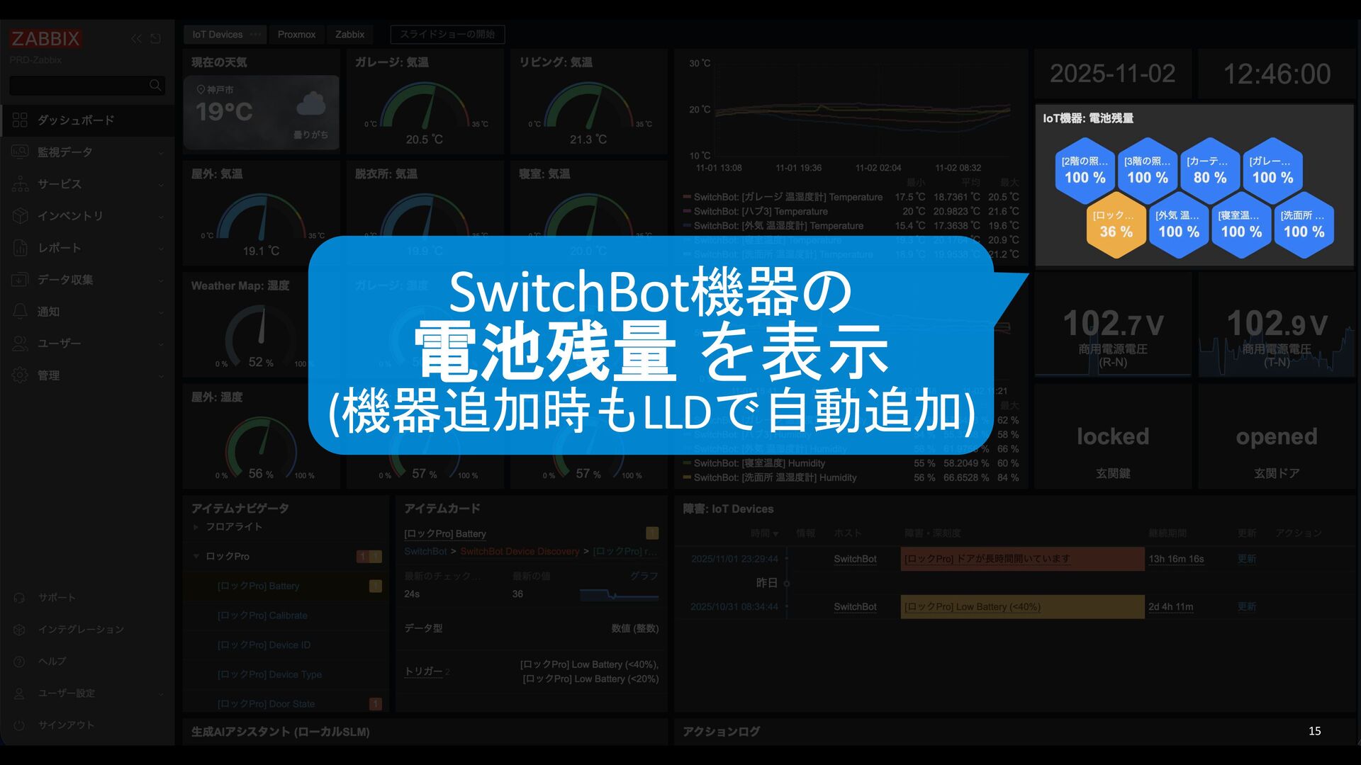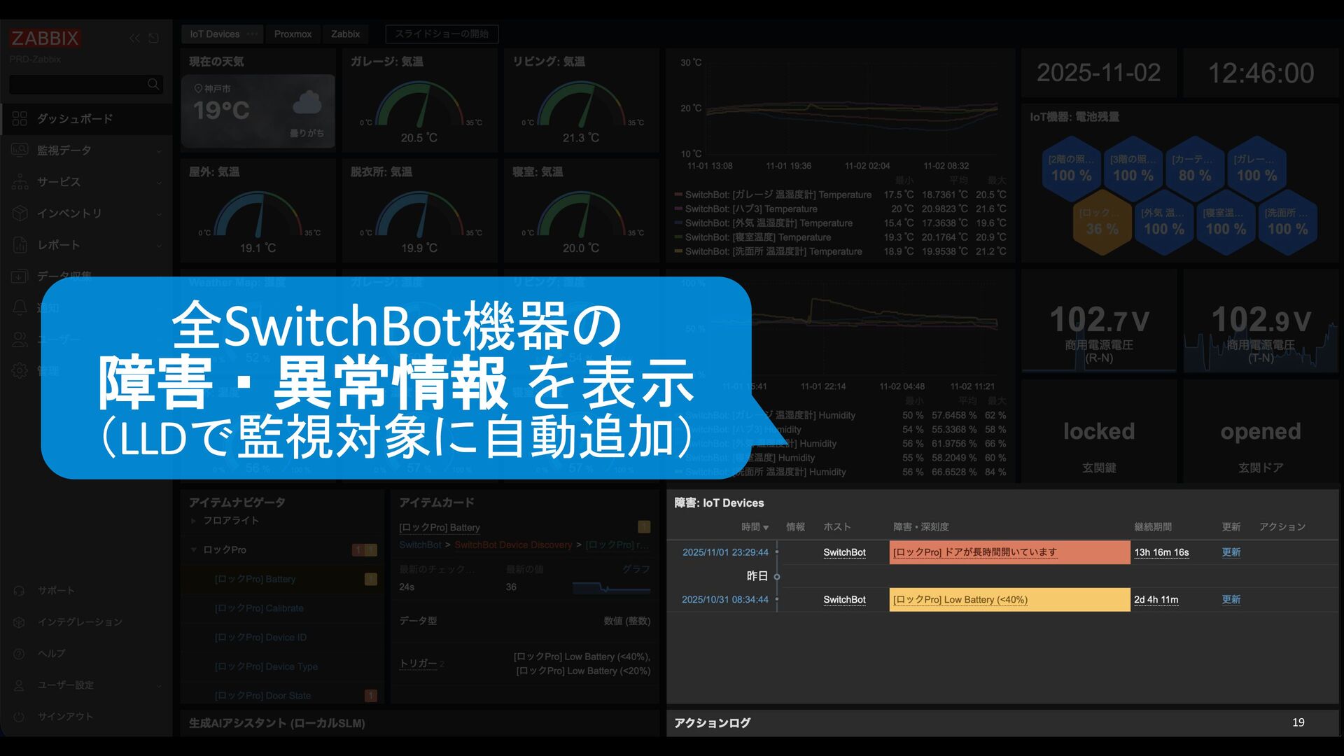 全SwitchBot機器の 障害・異常情報 を表示 (LLDで監視対象に自動追加) 19