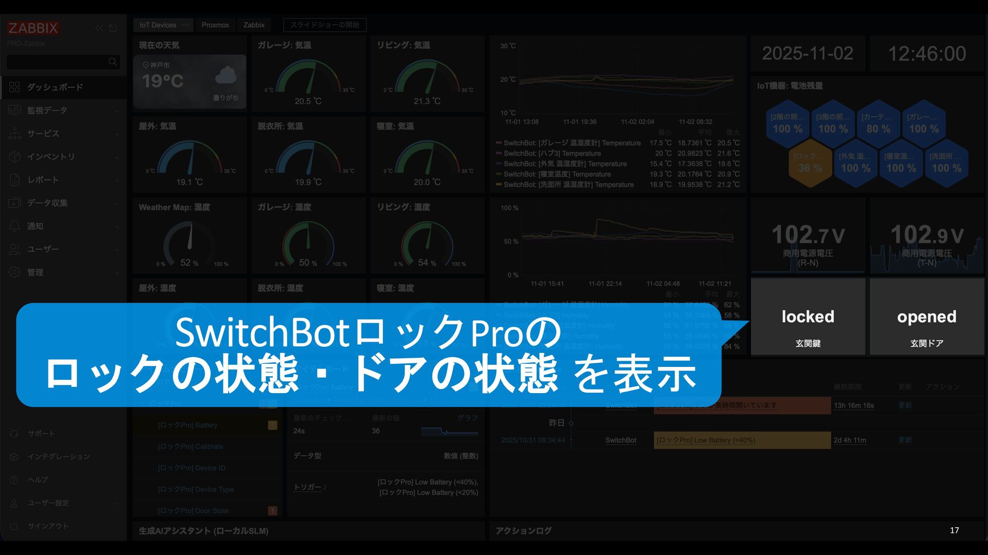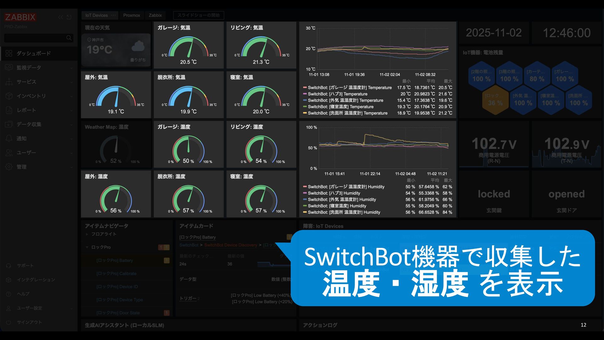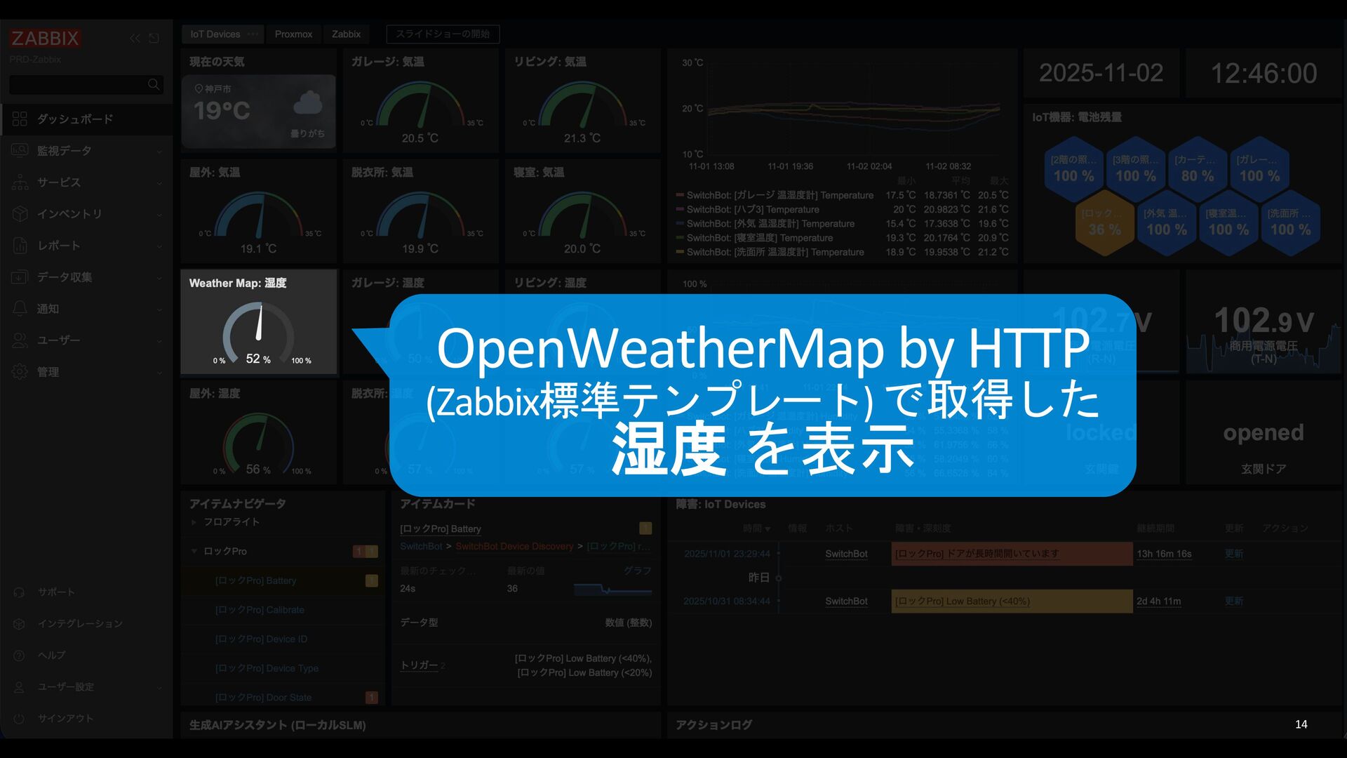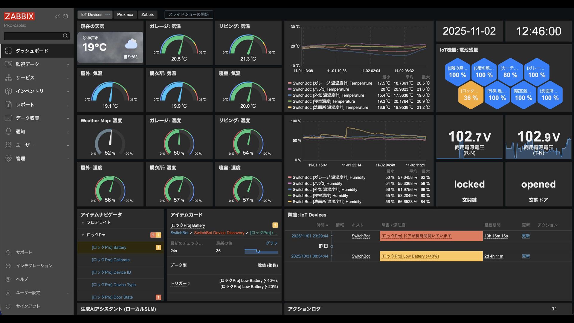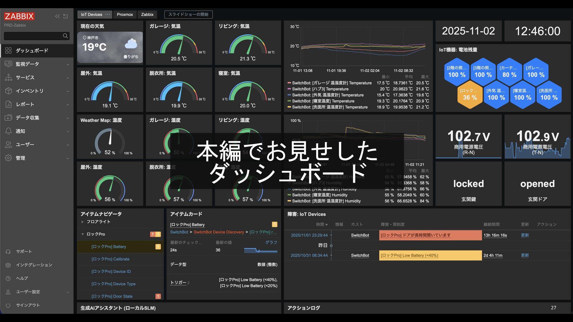 全SwitchBot機器の 障害・異常情報 を表示 (LLDで監視対象に自動追加) 19
