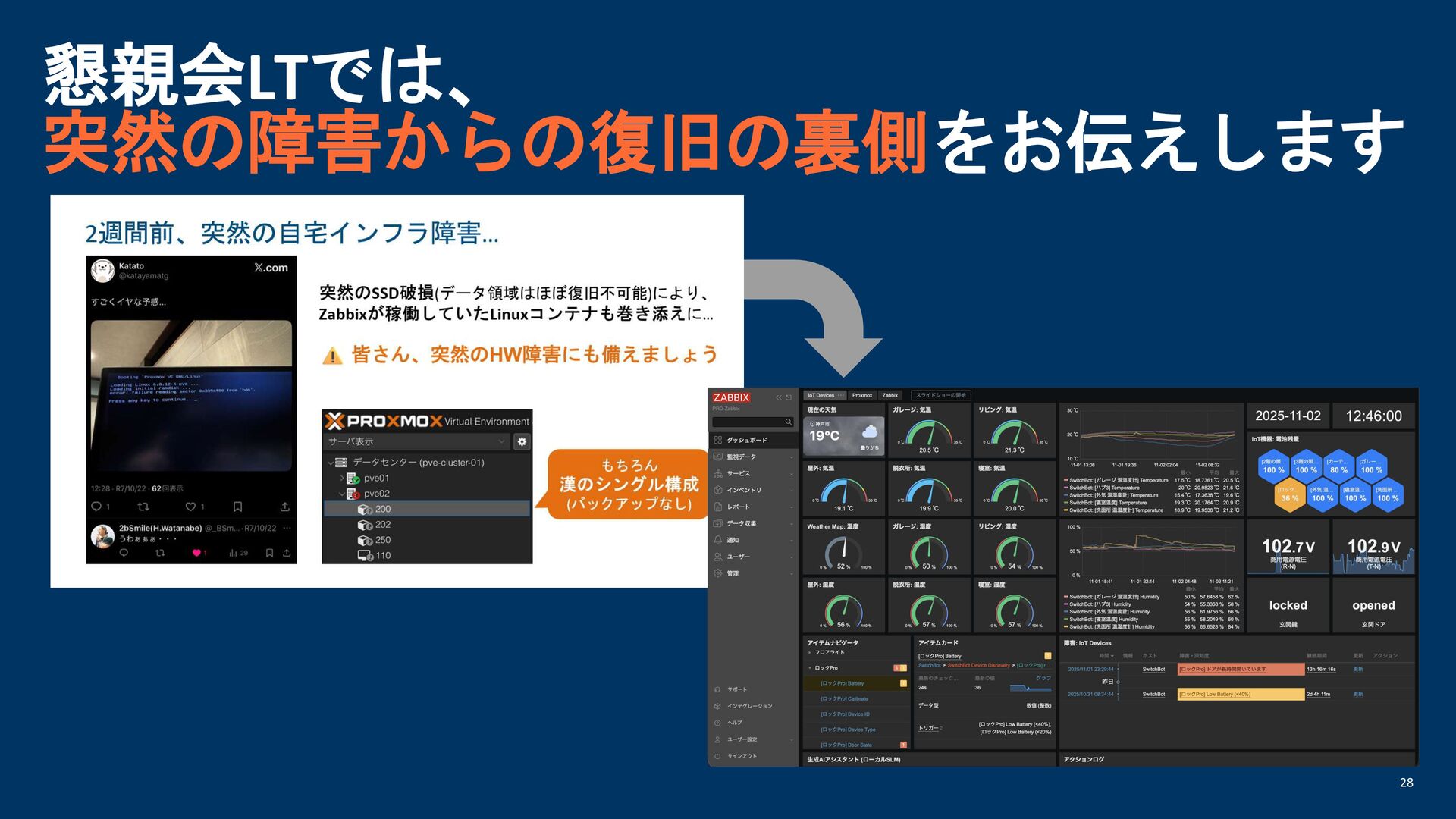 懇親会LTでは、 突然の障害からの復旧の裏側をお伝えします 28