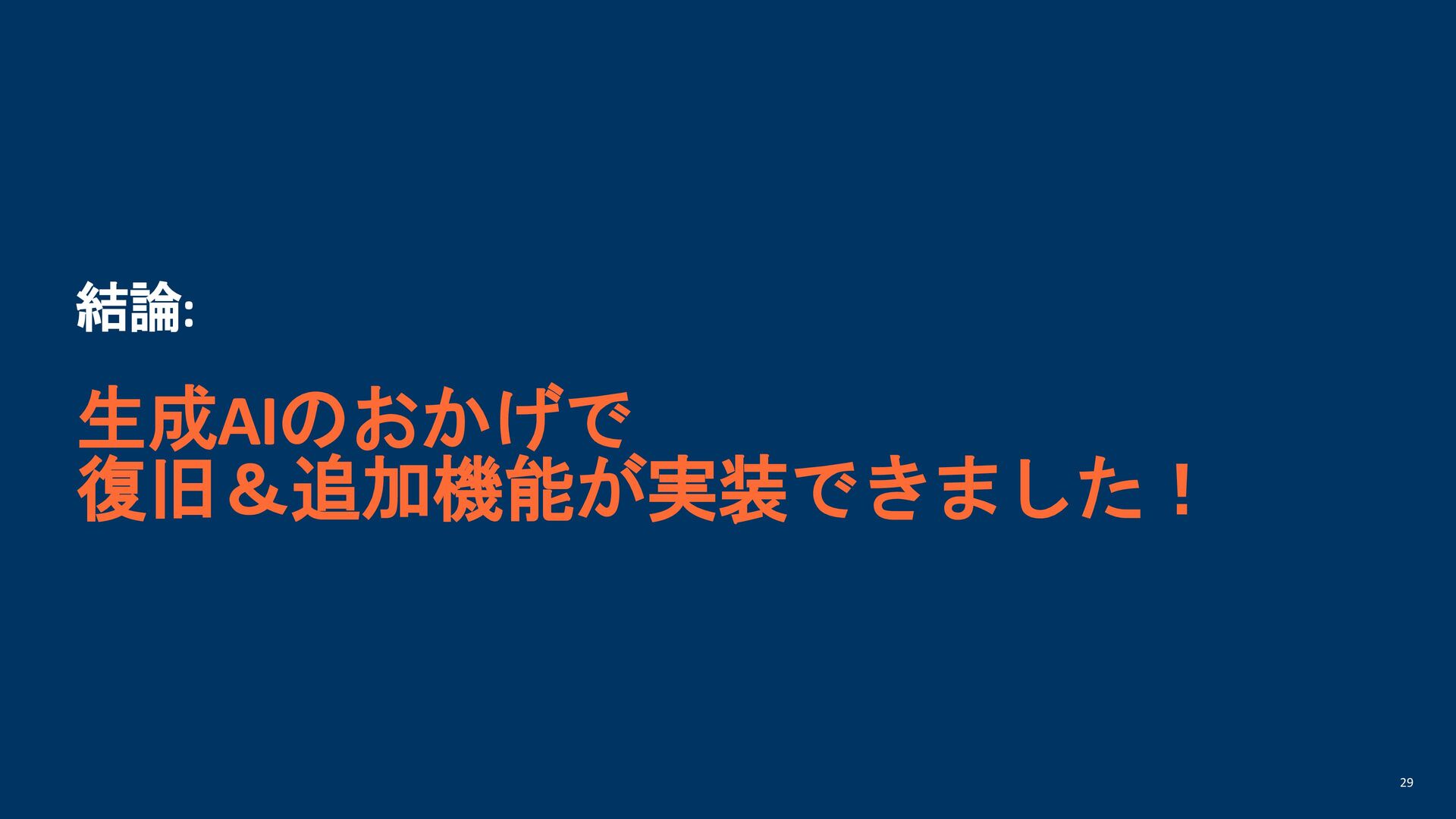 結論: 生成AIのおかげで 復旧&追加機能が実装できました! 29