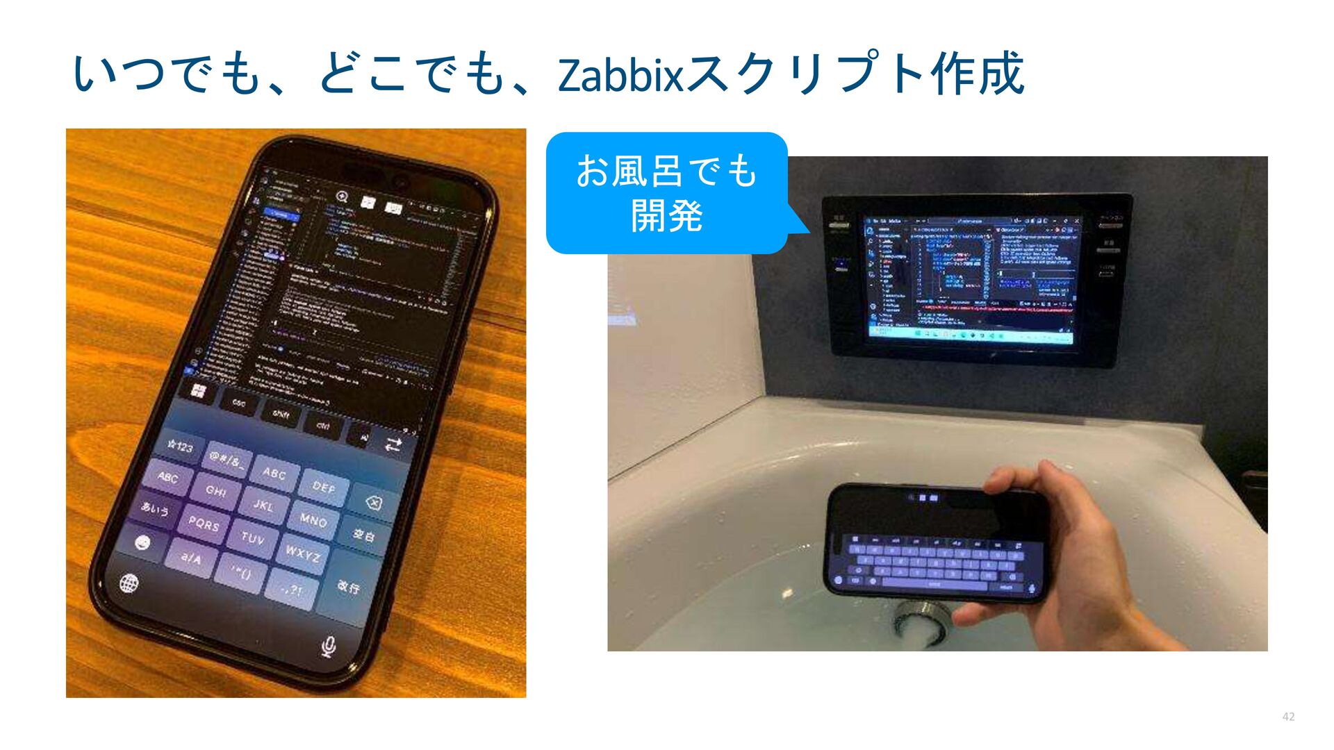 いつでも、どこでも、Zabbixスクリプト作成 Tailscale VPNと Windows App Mobileアプリで いつでもどこでも リモートデスクトップ接続 42 お風呂でも