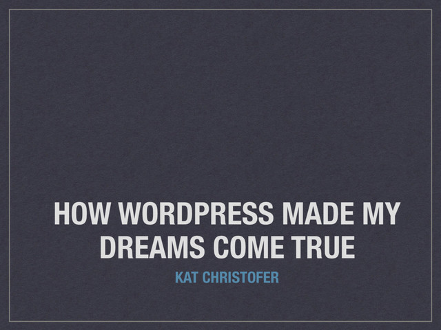 Watch the video at WordPress.tv http://wordpress.tv/2017/06/19/kat-christofer-how-wordpress-made-my-dreams-come-true/