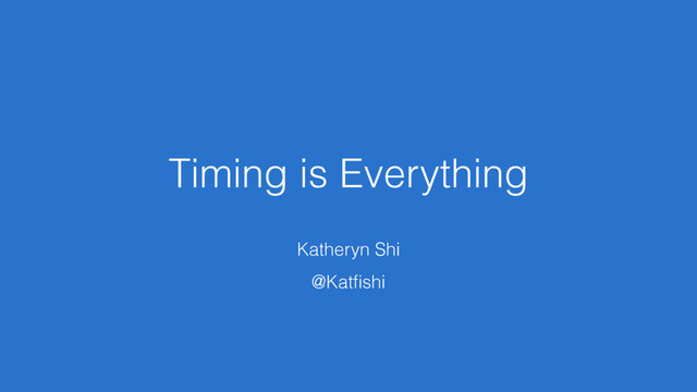 Timing is Everything Katheryn Shi @Katfishi
