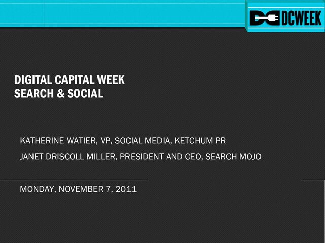 On Monday, November 7th, Katherine Watier, Ketchum Vice President, Social Media, and Janet Driscoll-Miller, President and CEO of Search Mojo hosted a day-long event, featuring a panel discussion and workshop on SEO and Social Media.
