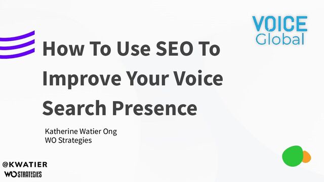 Presentation for Voice Global 2020: How to audit your voice footprint and use SEO to improve your voice search presence