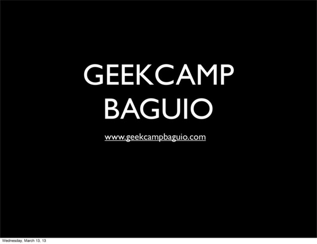 a technology meetup of this sort is actually happening in Baguio (which is VERY rare) has gotten me excited." — Erwin Simpauco of Texas Instruments Philippines, Inc. Wednesday, March 13, 13