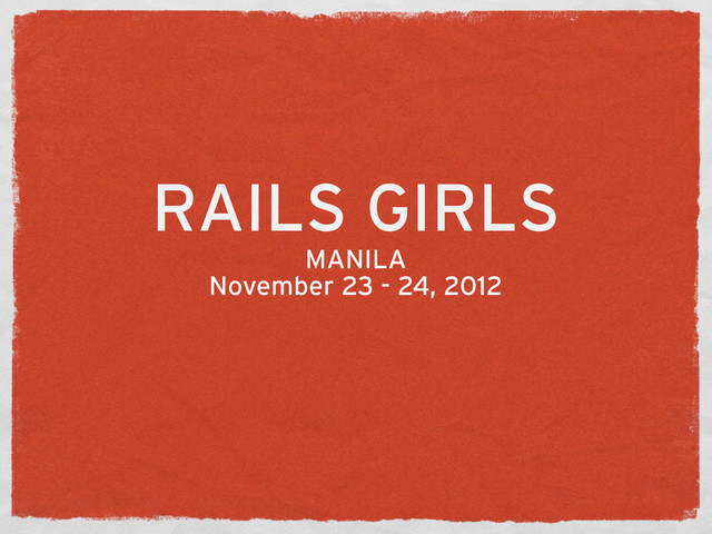 An introduction to Rails Girls for Manila event. November 23 to 24, 2012.