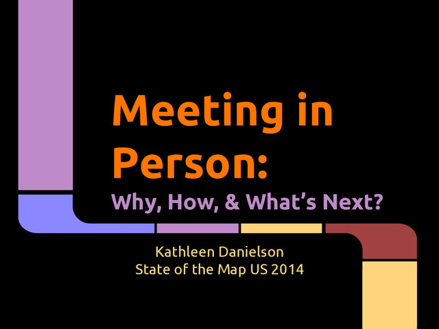 OSM for a lot of reasons. Learn about them! • Mapping is a solitary task; it's easy to go down rabbit holes and forget about the big picture • It can only help the project to establish more in-person hubs Why Bother?