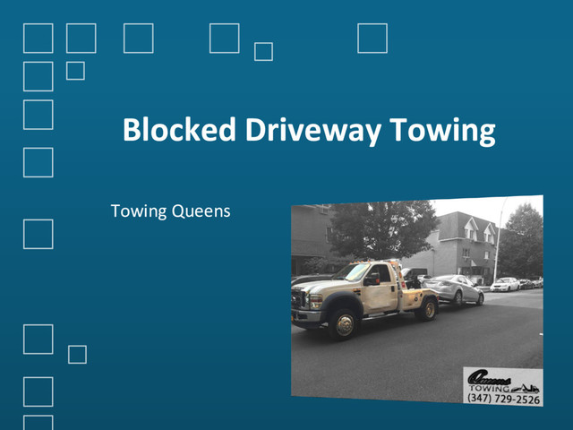 areas of new York. Our different services is following as: • Blocked driveway towing • Blocked driveway towing NYC • 24 Hours Emergency Towing • Collision Towing Service • Illegally Parked Towing